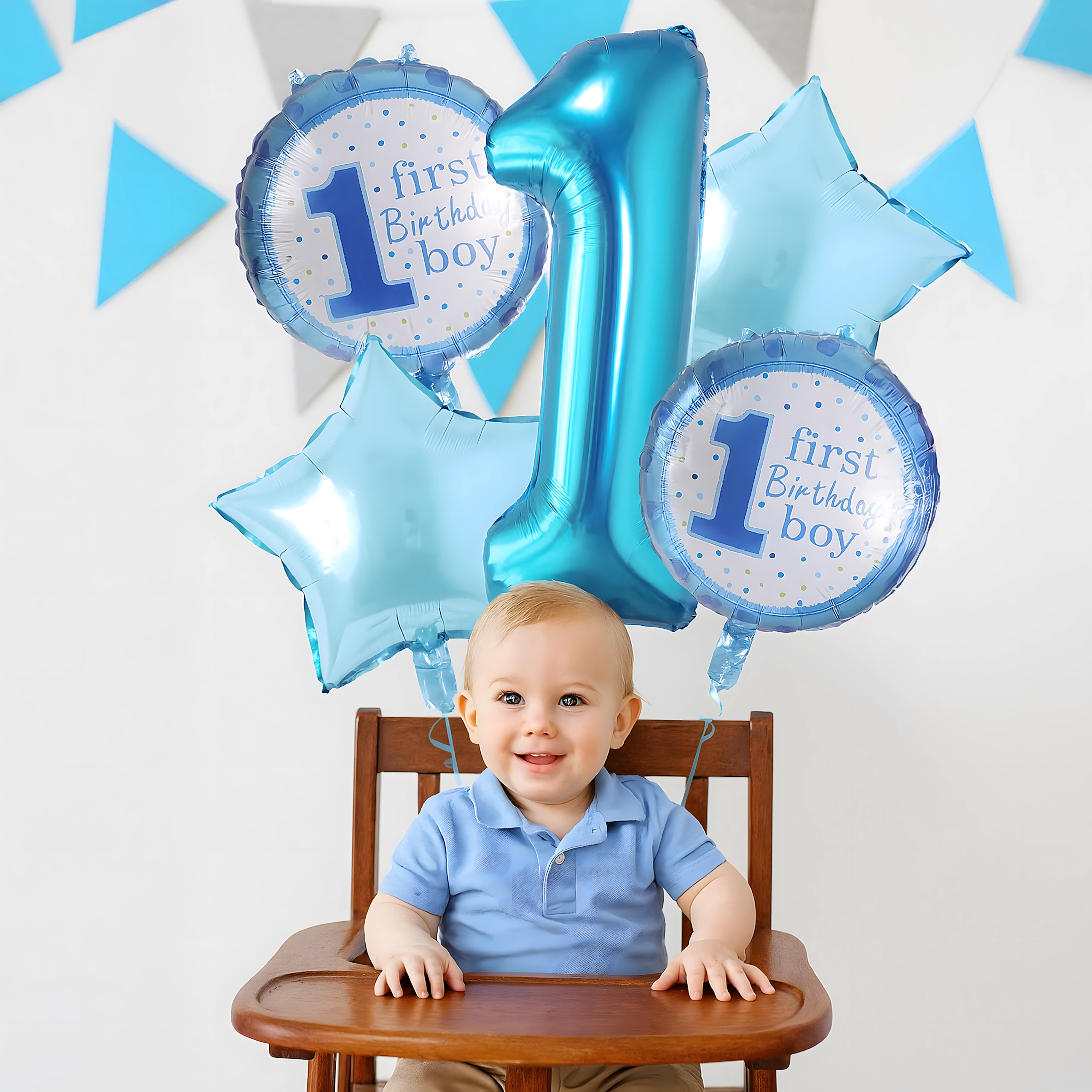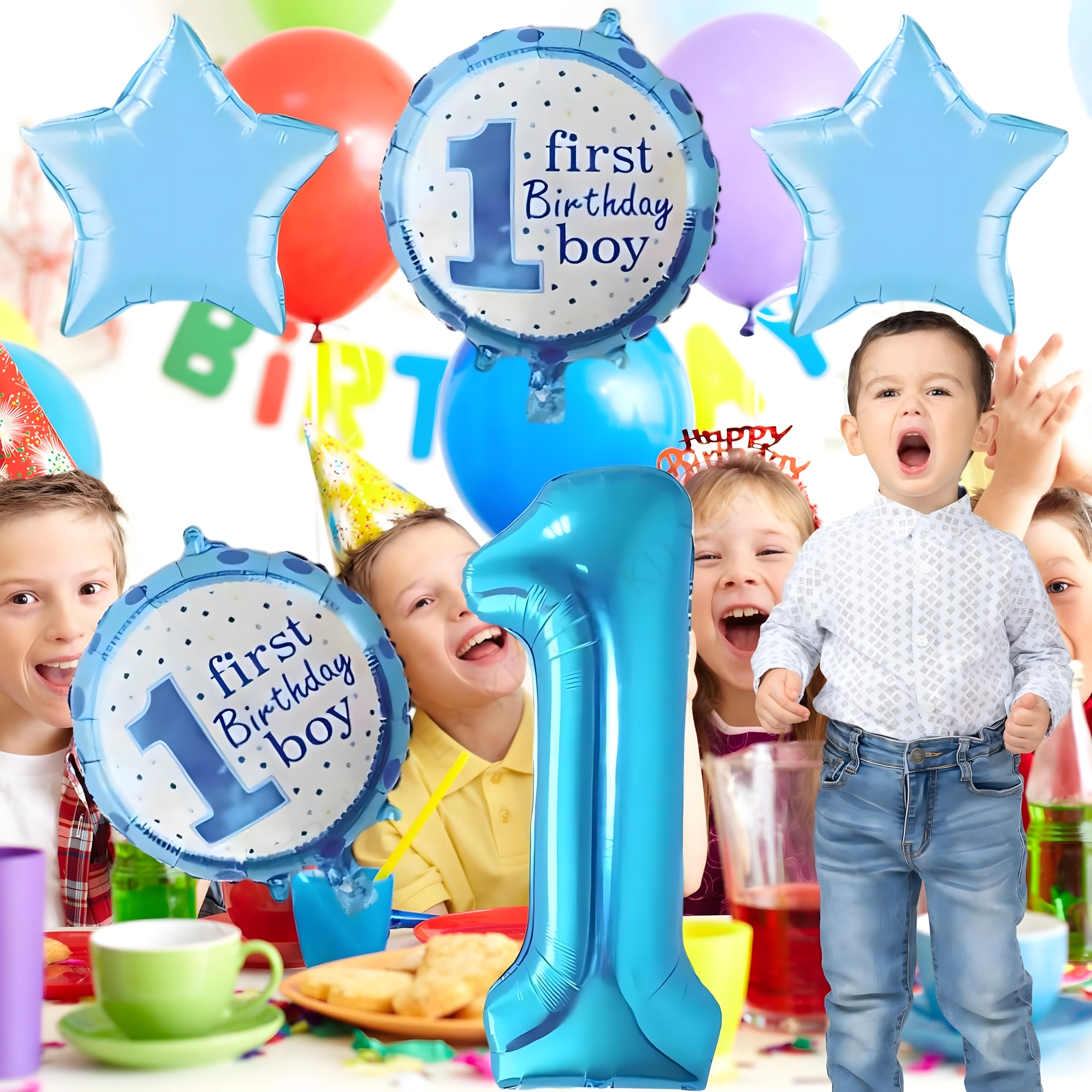 Creëer een betoverende sfeer voor de eerste verjaardag! Deze set ballonnen voor jongens combineert het cijfer 1, sterretjes en de tekst First Birthday Boy, waardoor hij perfect is voor een verjaardagsfeest, fotobooth en het versieren van de kinderkamer.