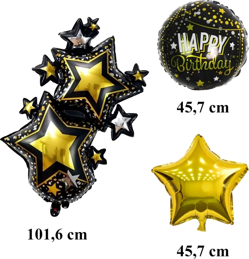 Geef je feest stijl met deze set grote ballonnen met het Happy Birthday-motief. Dankzij de felle kleuren en de mix van patronen ideaal voor de photobooth, de desserttafel en als aanvulling op andere decoraties.
