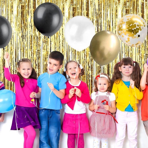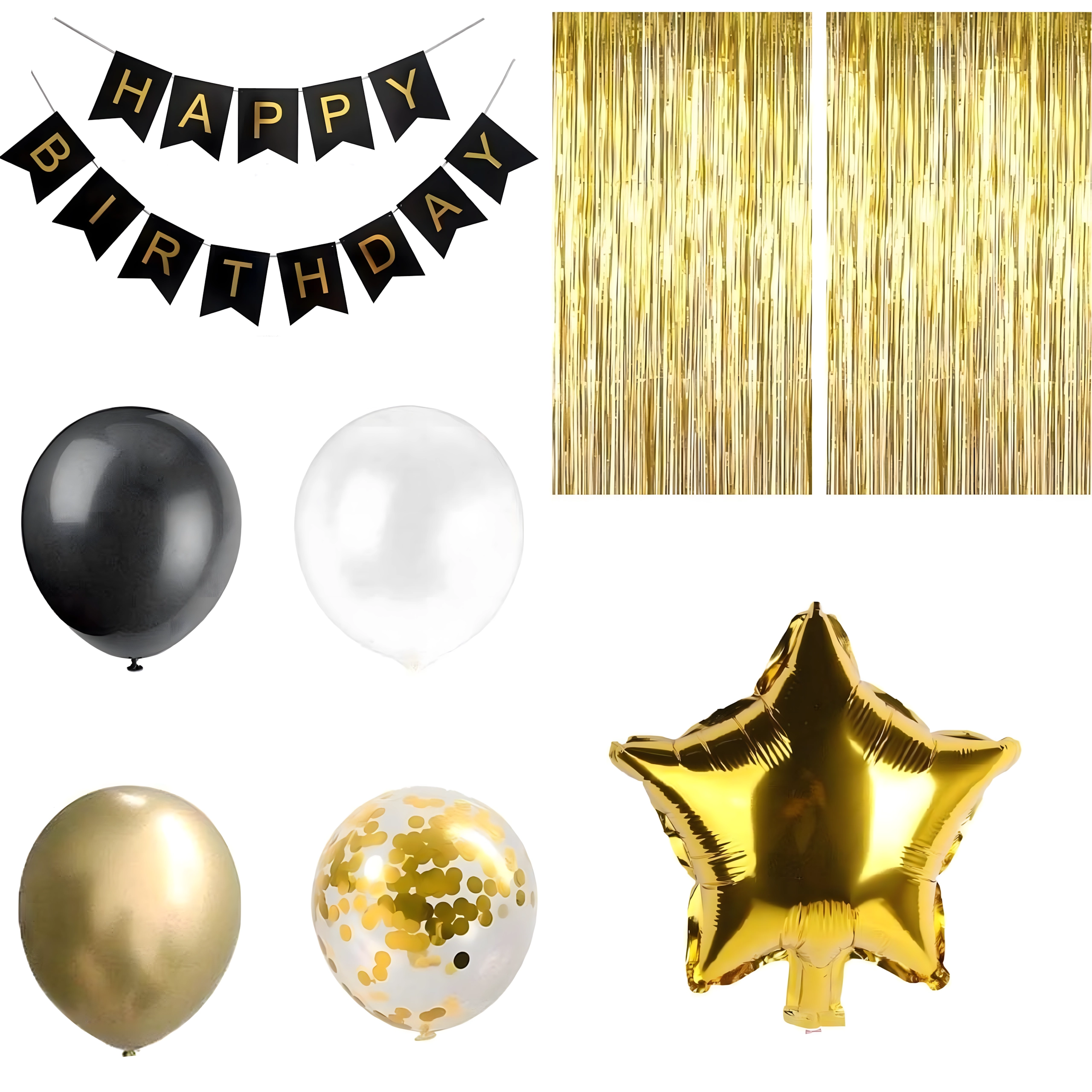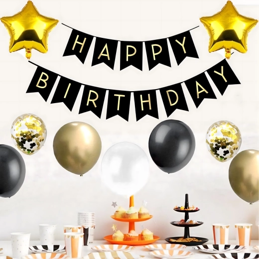 Deze complete decoratieset is ideaal om een opvallend verjaardagsdecor in zwart‑goud te creëren. De combinatie van verschillende soorten ballonnen en hangdecoratie zorgt voor een indrukwekkende achtergrond voor foto’s en de hoofdtafel van de jarige.