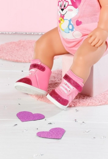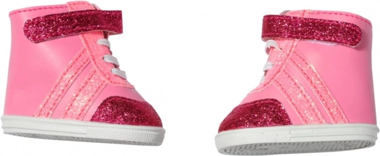 De BABY born-pop sluipt langzaam door het kamertje als een kleine roze panter. Stilte zolen en witte veters passen perfect bij de sneakers in verschillende tinten roze. Glitters mogen natuurlijk niet ontbreken! De schoenen komen tot de enkel en bieden de kleine ontdekkingsreizigster optimaal comfort bij elke uitstap.