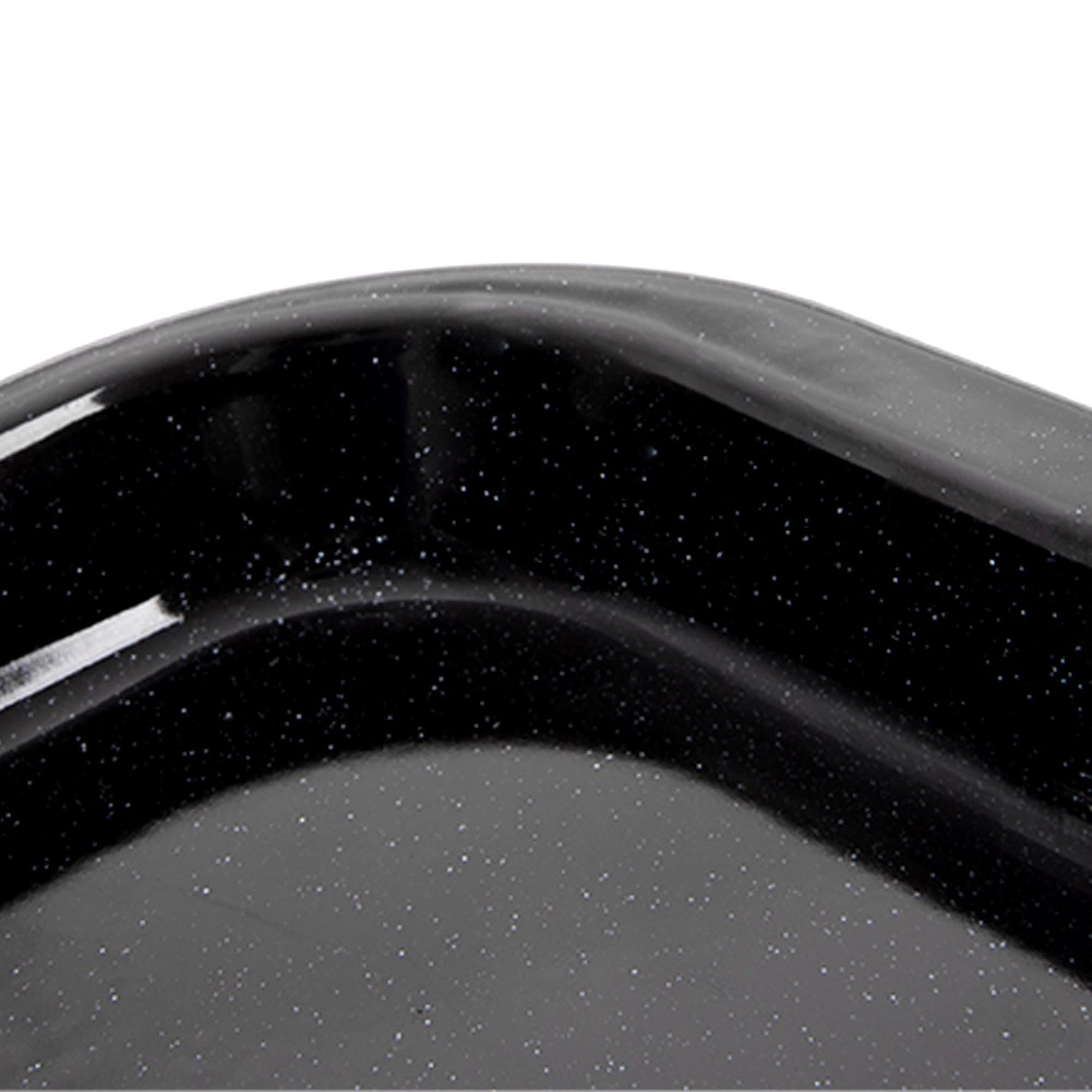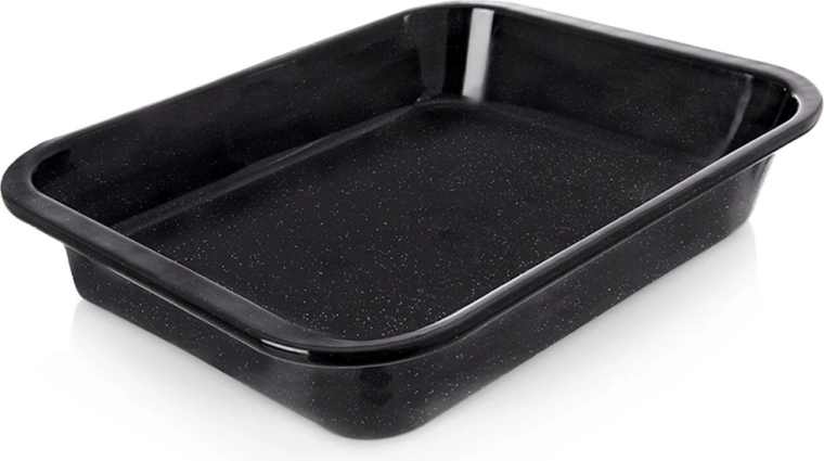 Deze diepe rechthoekige bakplaat is gemaakt van hoogwaardig staal met een slijtvaste geëmailleerde afwerking, die zorgt voor een lange levensduur, krasbestendigheid en eenvoudig onderhoud. Het gladde oppervlak vermindert aanbranden en maakt het gemakkelijk om gerechten los te maken.
