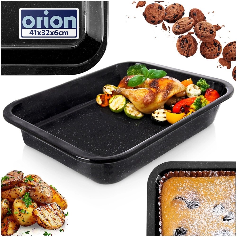 Praktische en duurzame bakplaat van geëmailleerd staal met afmetingen 41 × 32 × 6 cm, biedt gelijkmatige bakresultaten, eenvoudige reiniging en hoge randen voor veilig bereiden van zowel zoete als hartige gerechten. Geschikt voor gas- en elektrische ovens en vaatwasserbestendig.