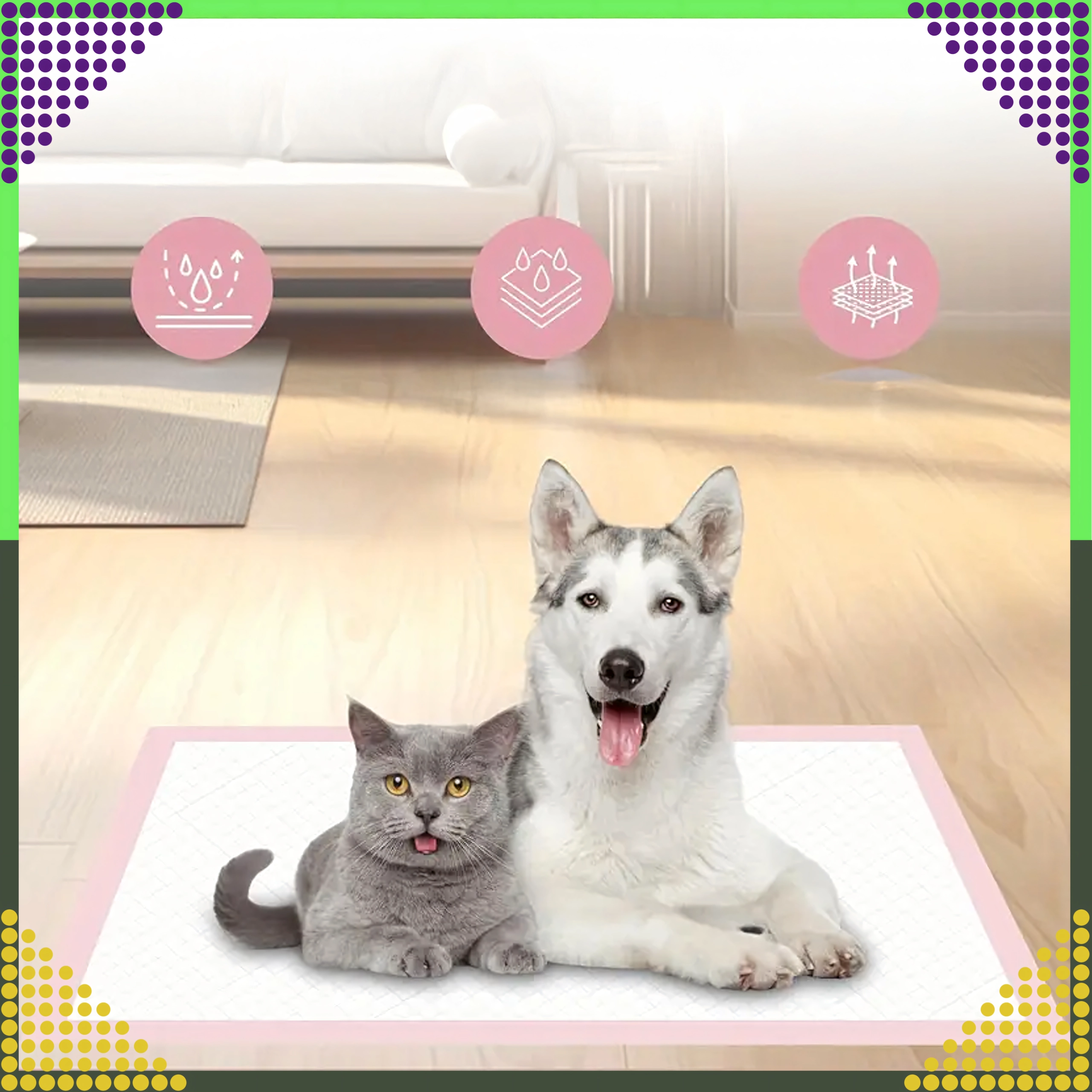 Praktische hygiënische onderleggers voor huisdieren die uw huis schoon en fris houden. Ze bieden betrouwbare bescherming tegen doorlekken, zijn zacht en comfortabel voor zowel honden als katten en dankzij het formaat van 60 × 90 cm dekken ze een groter oppervlak. Ideaal voor zindelijkheidstraining, puppy’s, senioren en reizen.