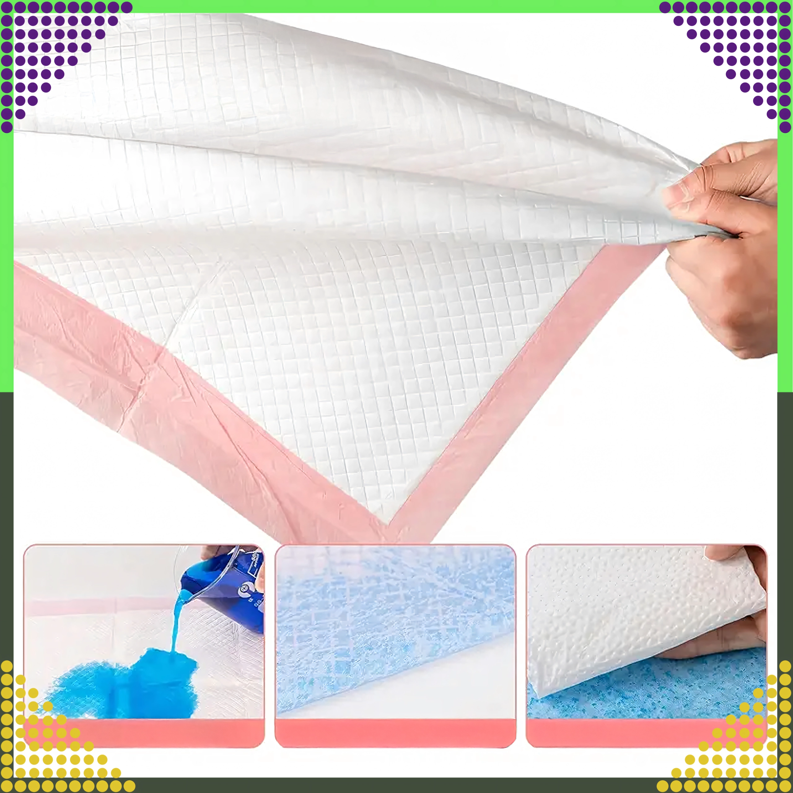 Het gewatteerde oppervlak verspreidt vloeistof snel, de absorberende kern sluit het op en de ondoordringbare onderfolie beschermt de vloer betrouwbaar.