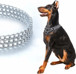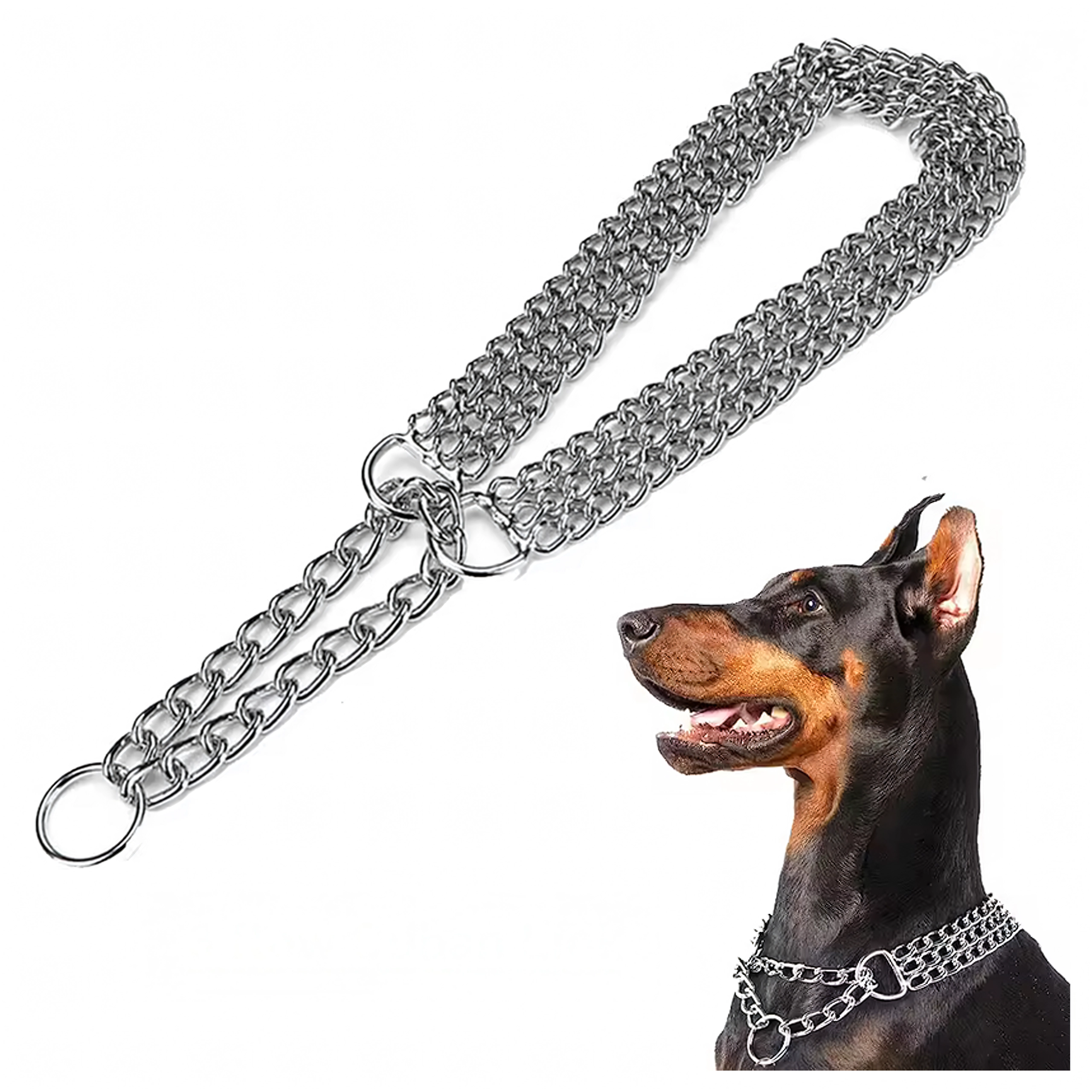 Deze slipketting is gemaakt van hoogwaardig verchroomd staal, dat zich onderscheidt door hoge sterkte, corrosiebestendigheid en een glad oppervlak voor het comfort van de hond. De drievoudige ketting verdeelt de druk gelijkmatig en biedt nauwkeurige en gevoelige controle tijdens de training.