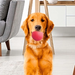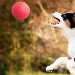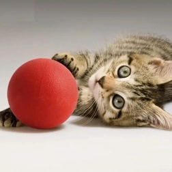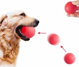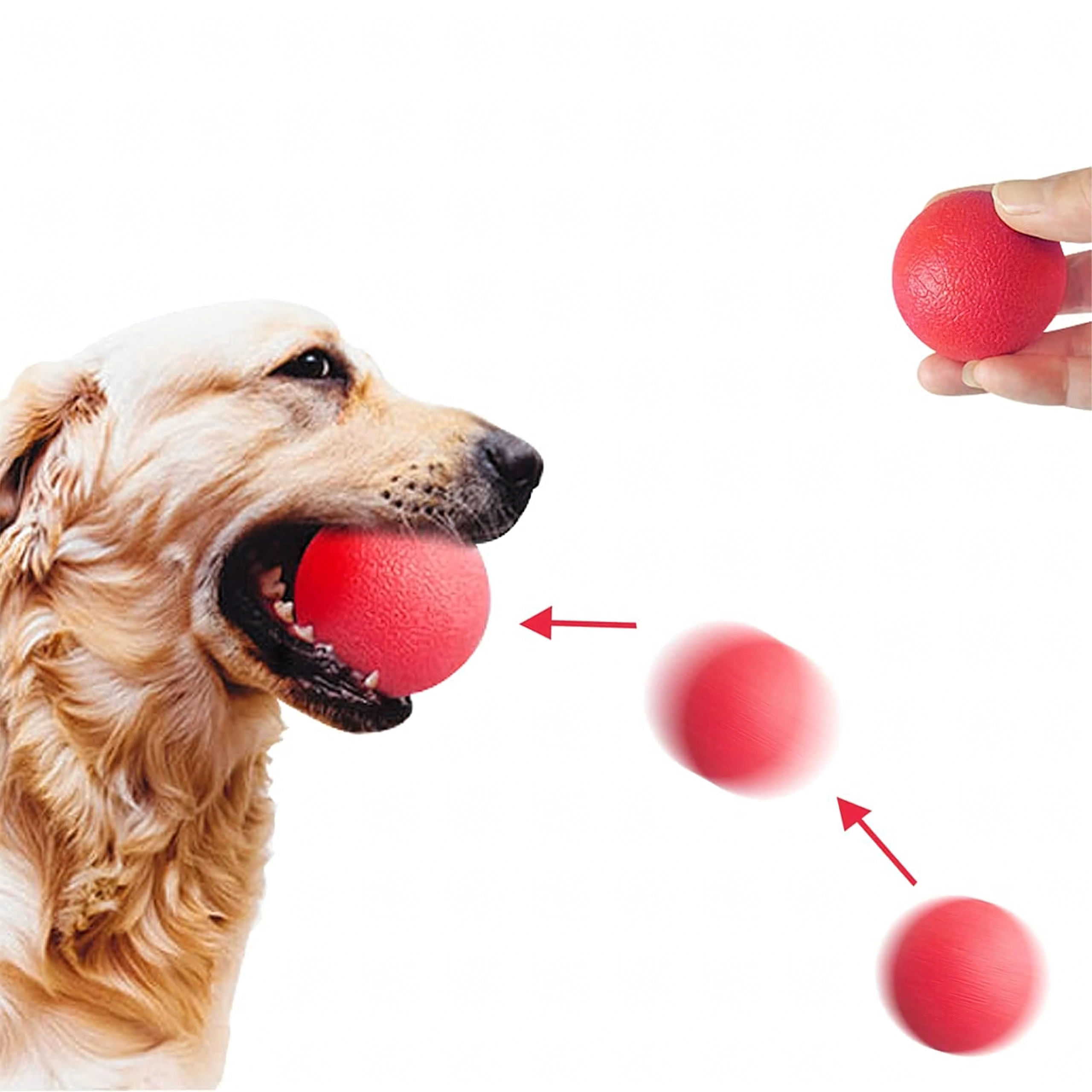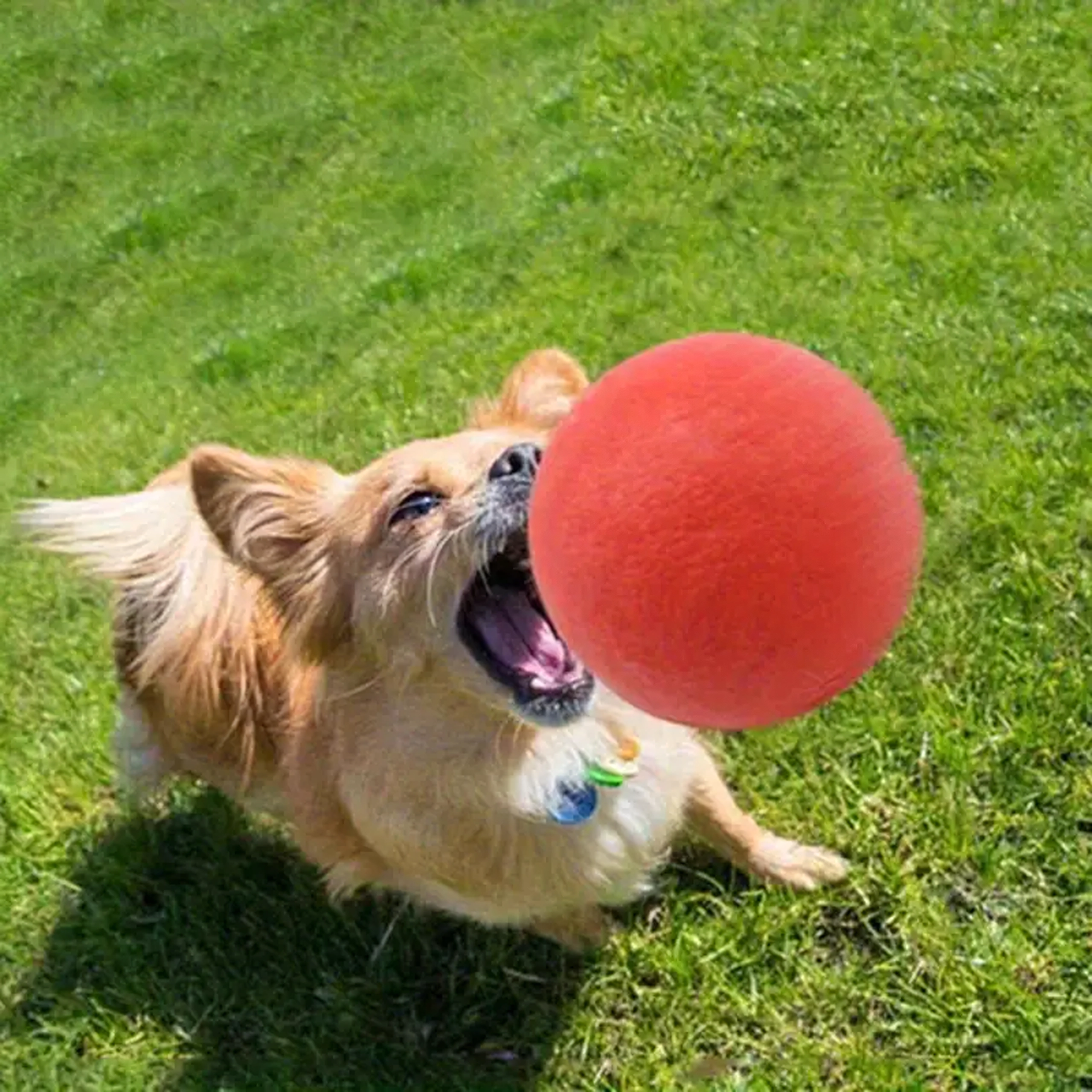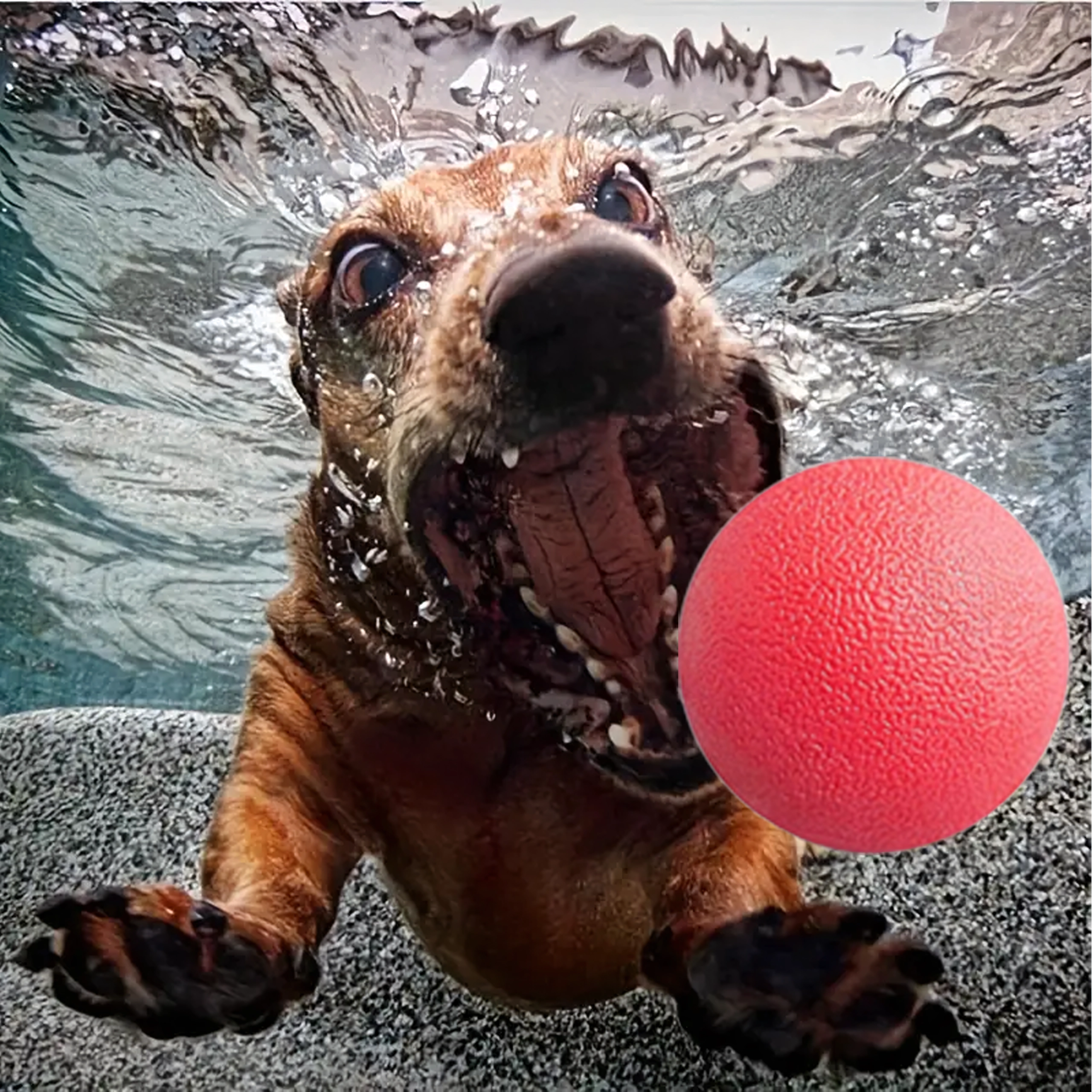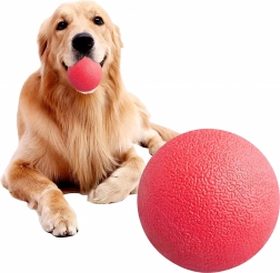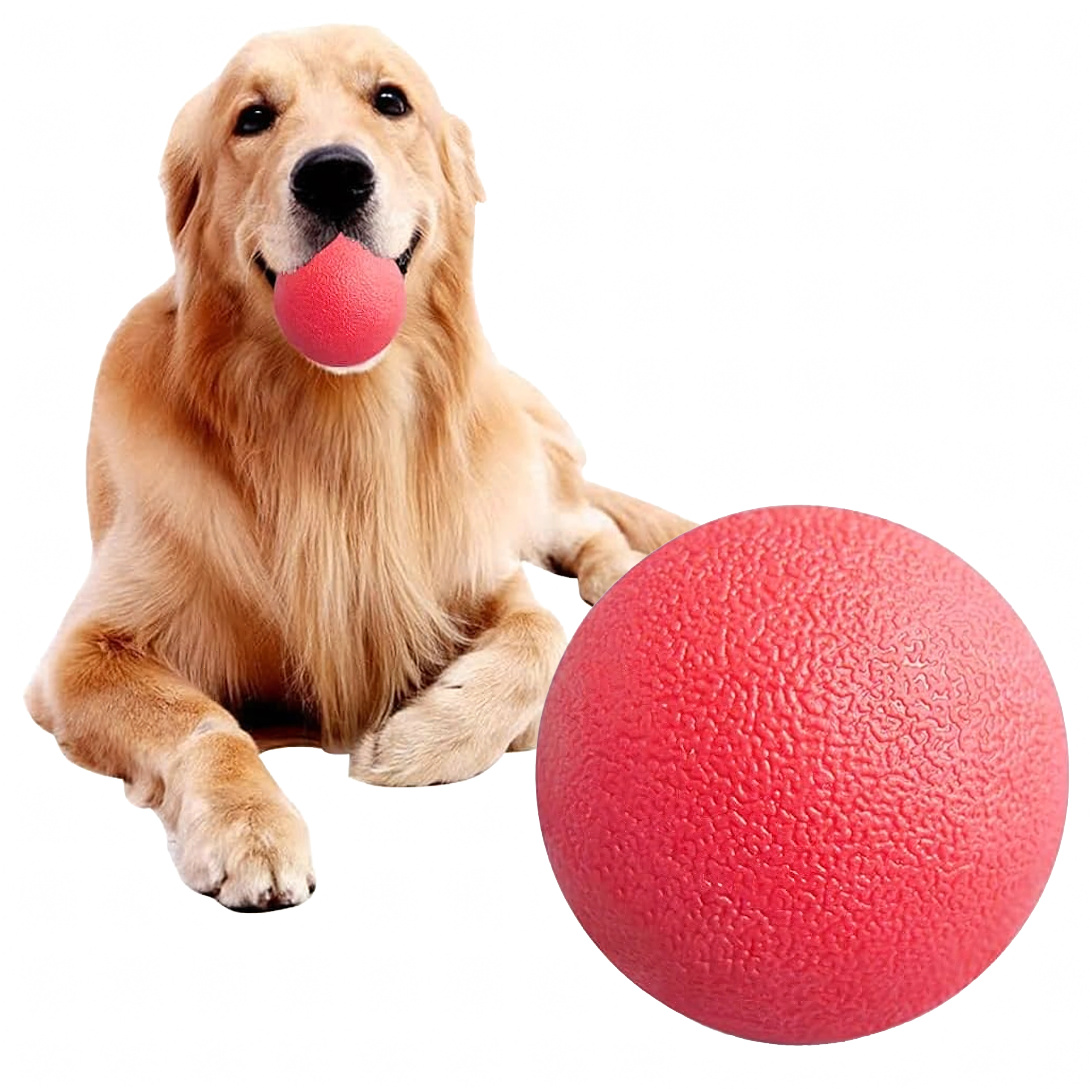De bal is gemaakt van massief, hard rubber dat beter bestand is tegen bijten en ruwe speelomstandigheden, zowel binnen als buiten.