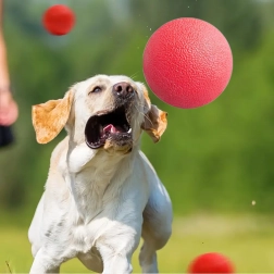 Universele hondenbal met een diameter van 6 cm van massief rubber voor dagelijks speelplezier. Hij is bijtbestendig, veilig voor tanden en tandvlees, drijft gemakkelijk op water en helpt tanden te reinigen tijdens het spelen. Geweldig voor apporteren in huis, in de tuin en bij het water.