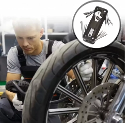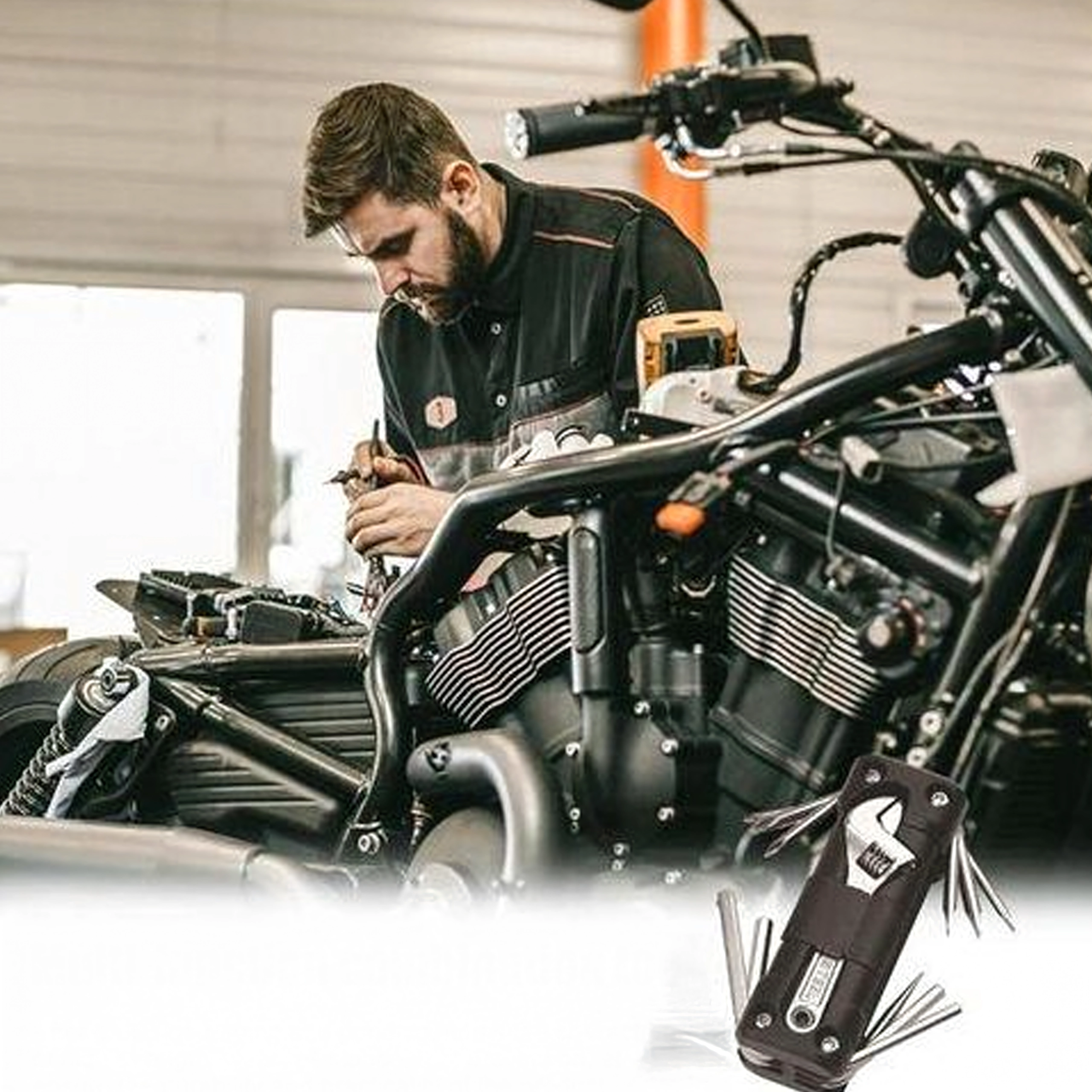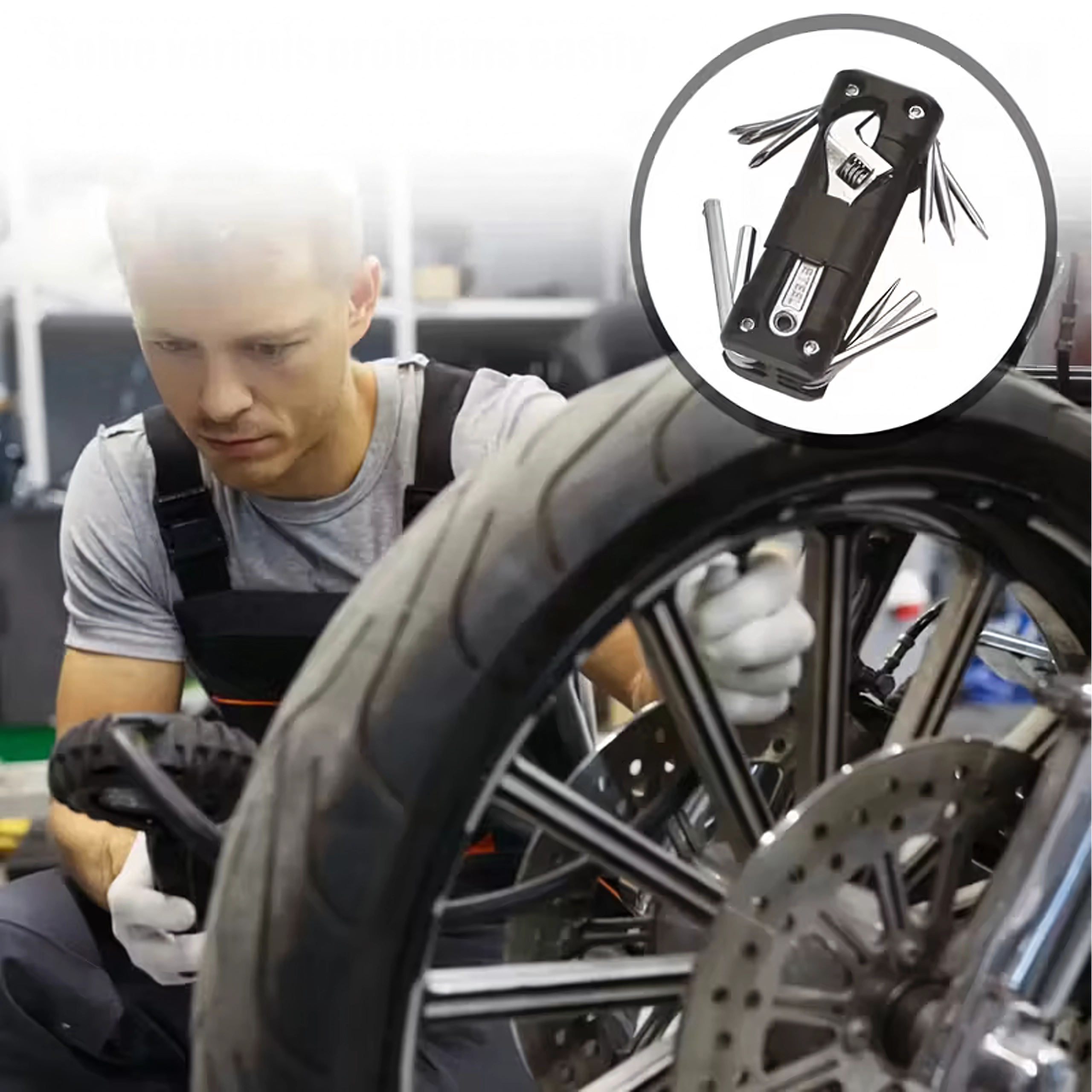 Bevat een selectie van de meest gebruikte inbussleutels, schroevendraaiers en sleutels, inclusief een verstelbare sleutel en accessoires voor snelle ingrepen aan de fiets, motor of in de werkplaats. Een betrouwbare helper voor dagelijks onderhoud en onverwachte situaties.