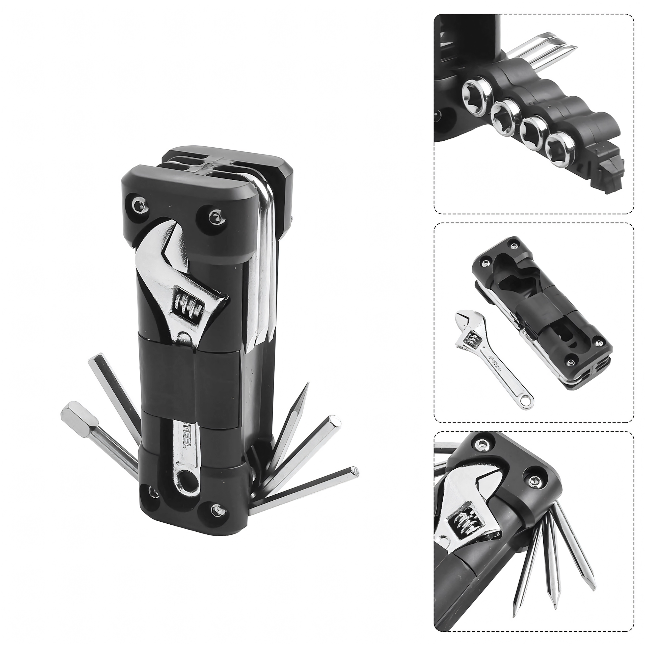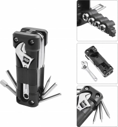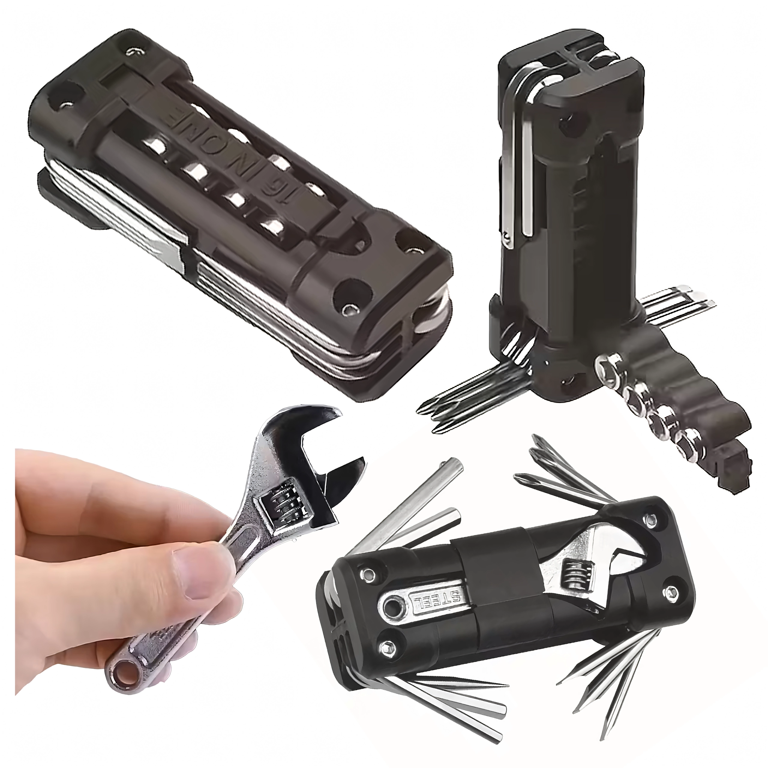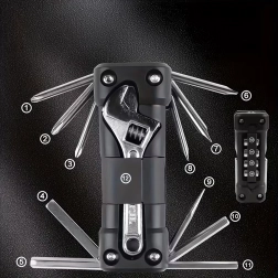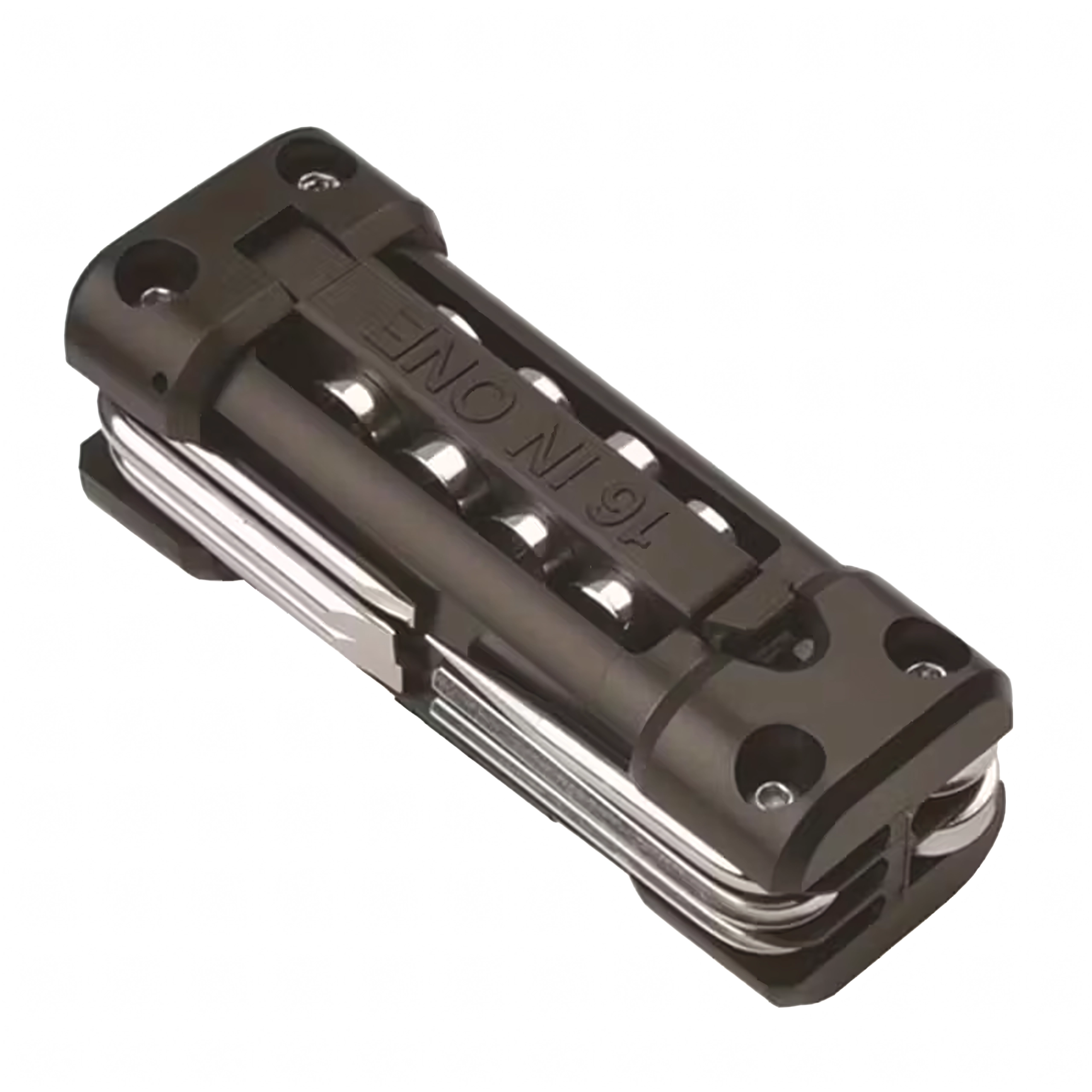 De universele 13-in-1 multitool biedt alles wat je nodig hebt om bouten aan te draaien en snel af te stellen, onderweg en thuis. Robuuste metalen tools en een ergonomische behuizing zorgen voor een stevige grip en lange levensduur. Dankzij de opvouwbare constructie past hij gemakkelijk in je broekzak, zadel tasje of het dashboardkastje van de auto.