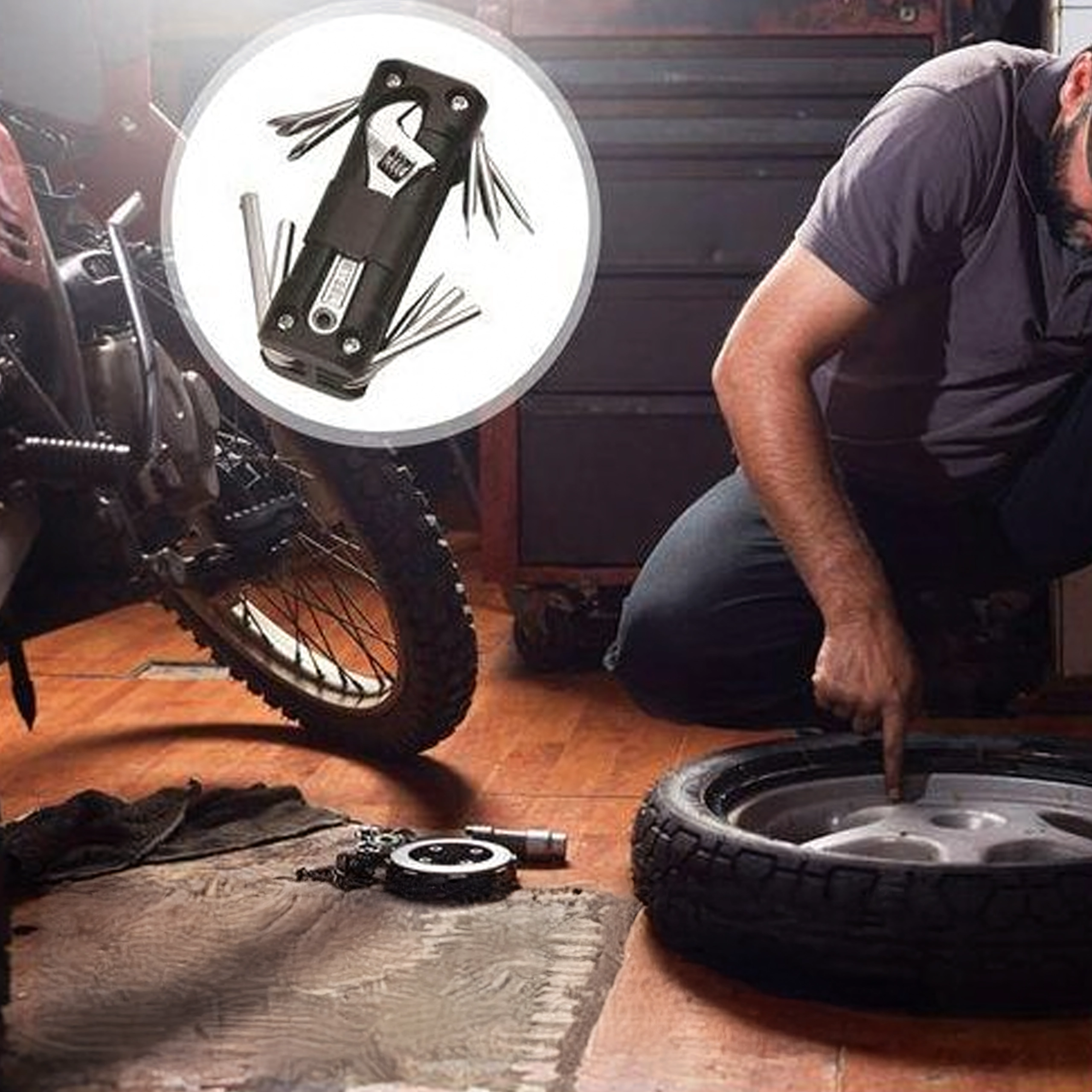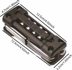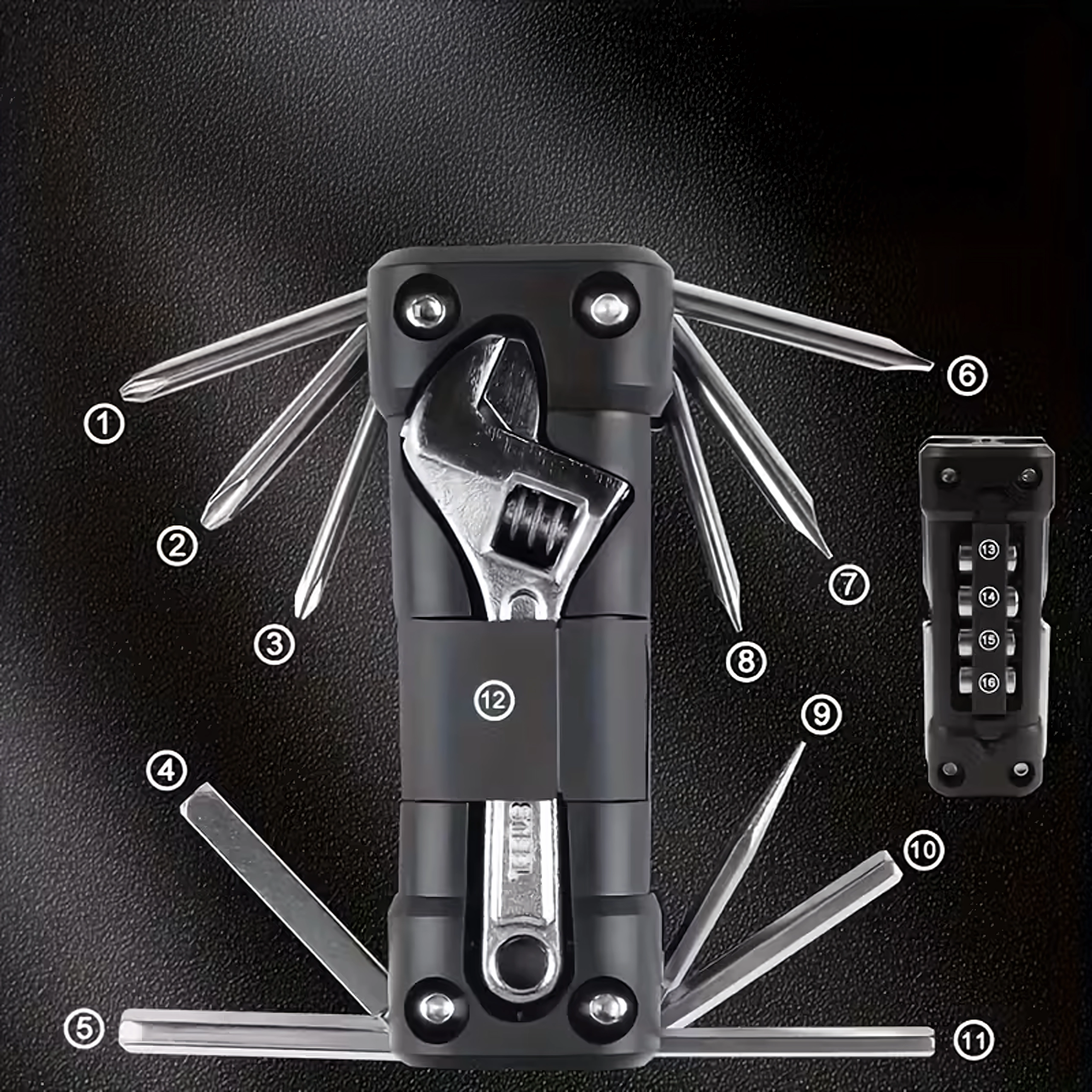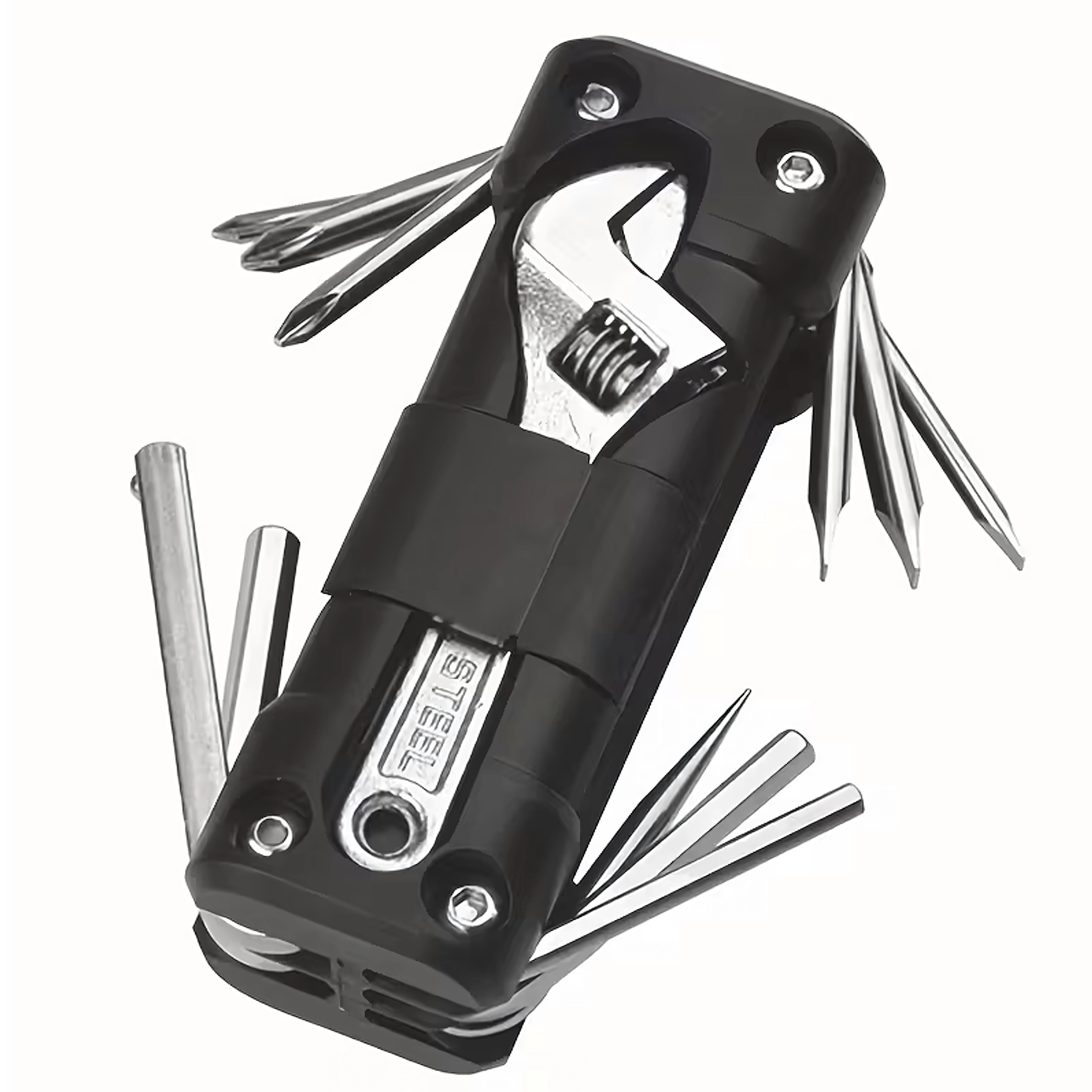Praktische 13-in-1 multitool vervangt een hele gereedschapskist. Hij is compact, opvouwbaar en ideaal voor fiets, werkplaatsreparaties, auto en kamperen – kortom altijd bij de hand wanneer je een snelle reparatie nodig hebt.