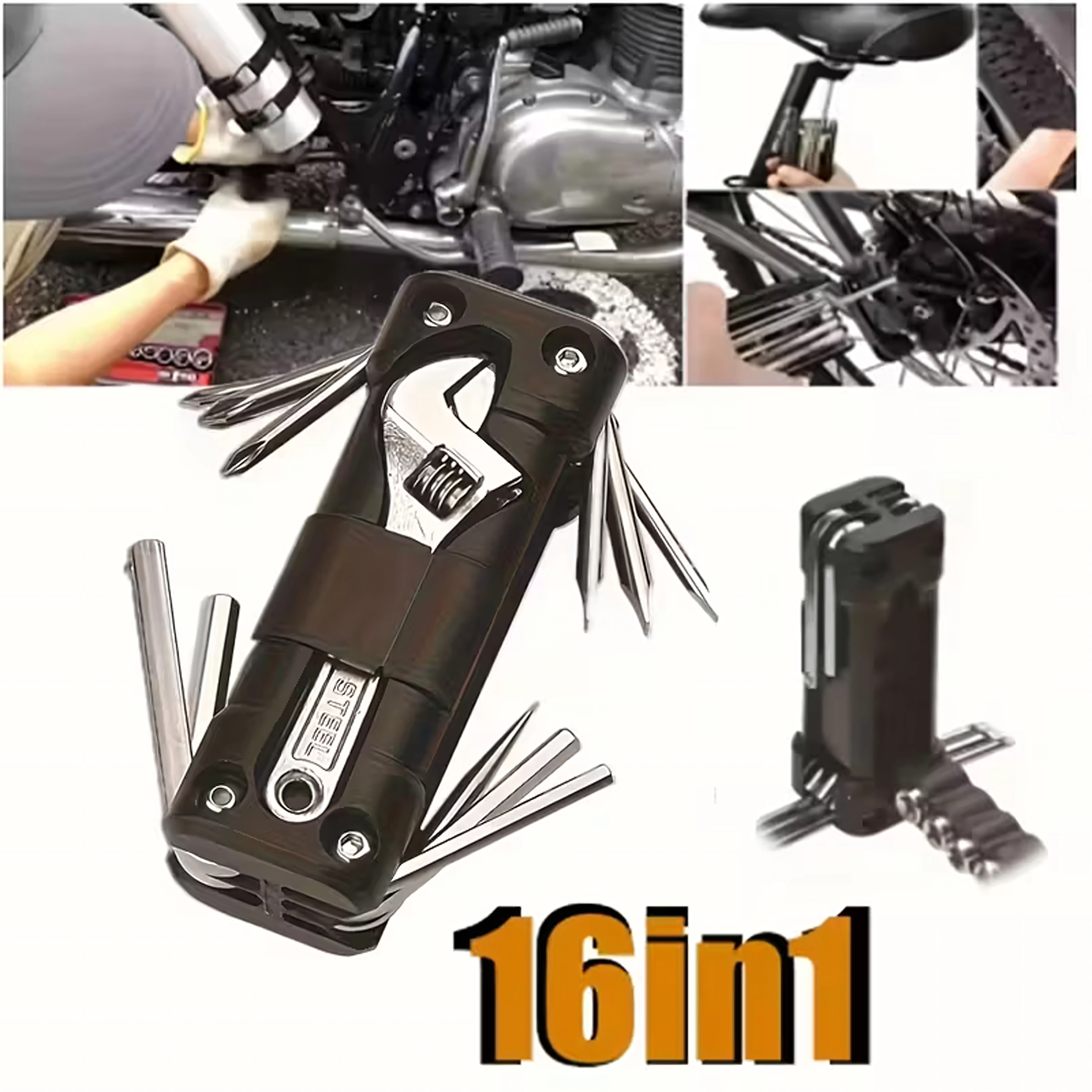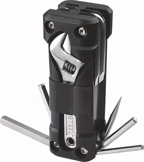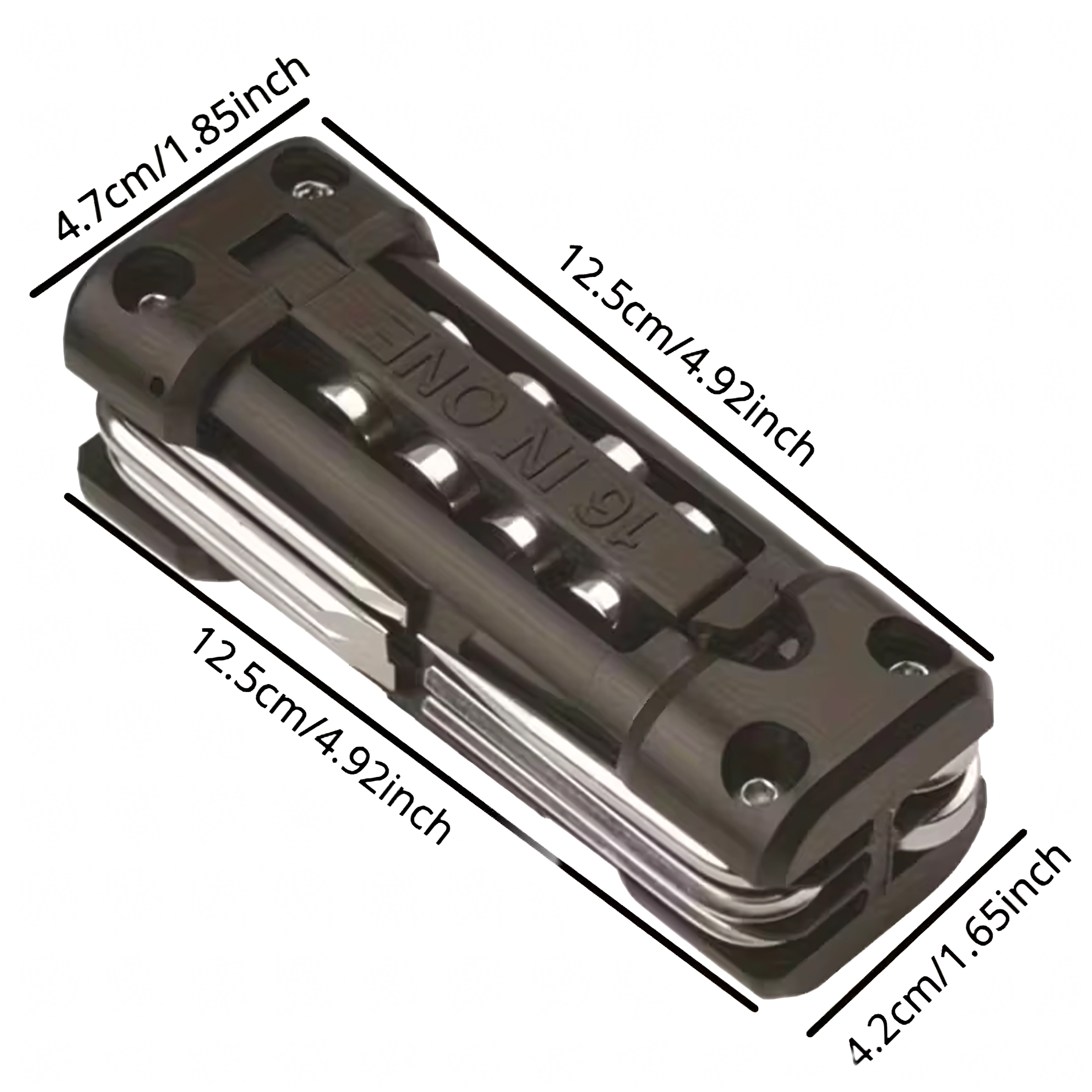 Praktische 13-in-1 multitool vervangt een hele gereedschapskist. Hij is compact, opvouwbaar en ideaal voor fiets, werkplaatsreparaties, auto en kamperen – kortom altijd bij de hand wanneer je een snelle reparatie nodig hebt.