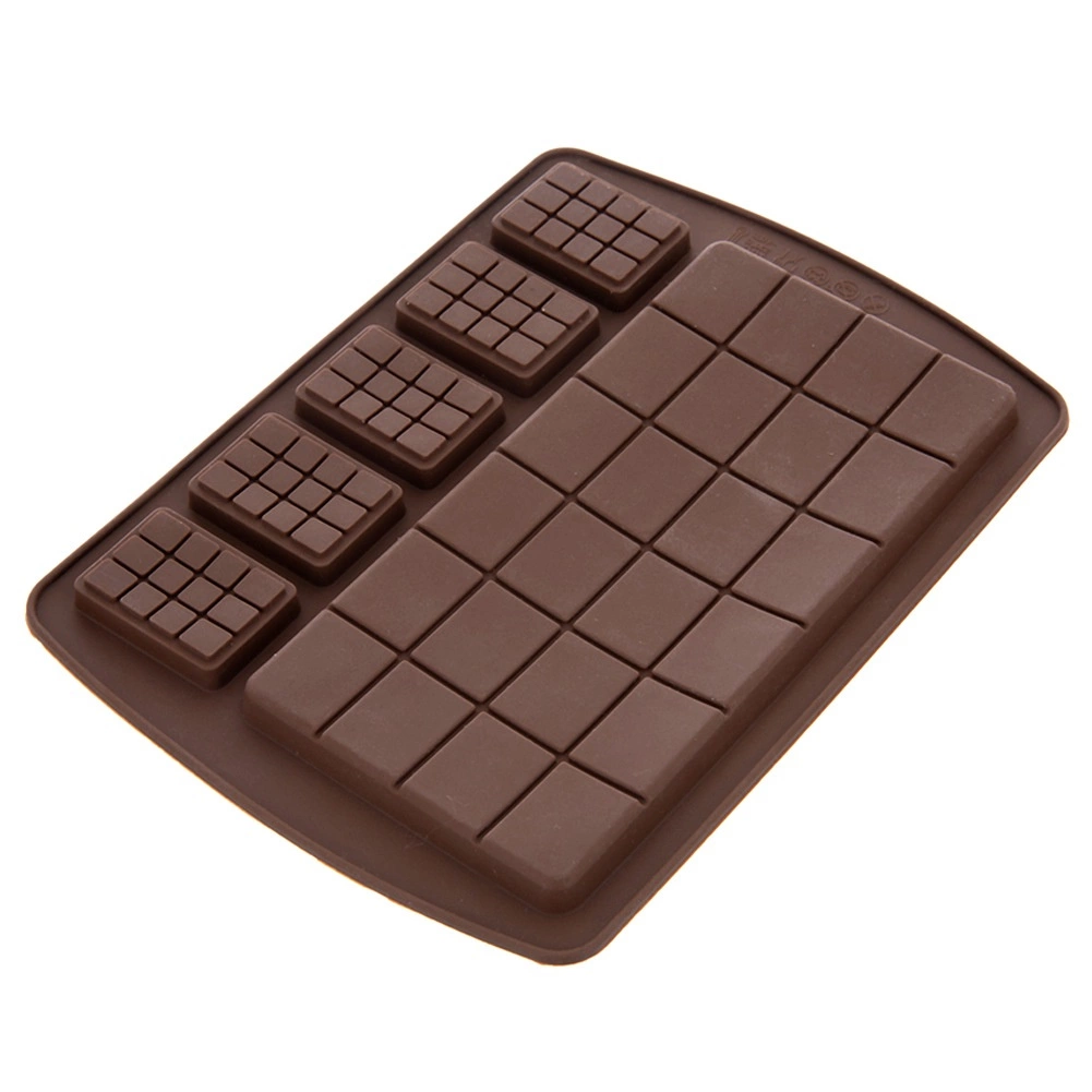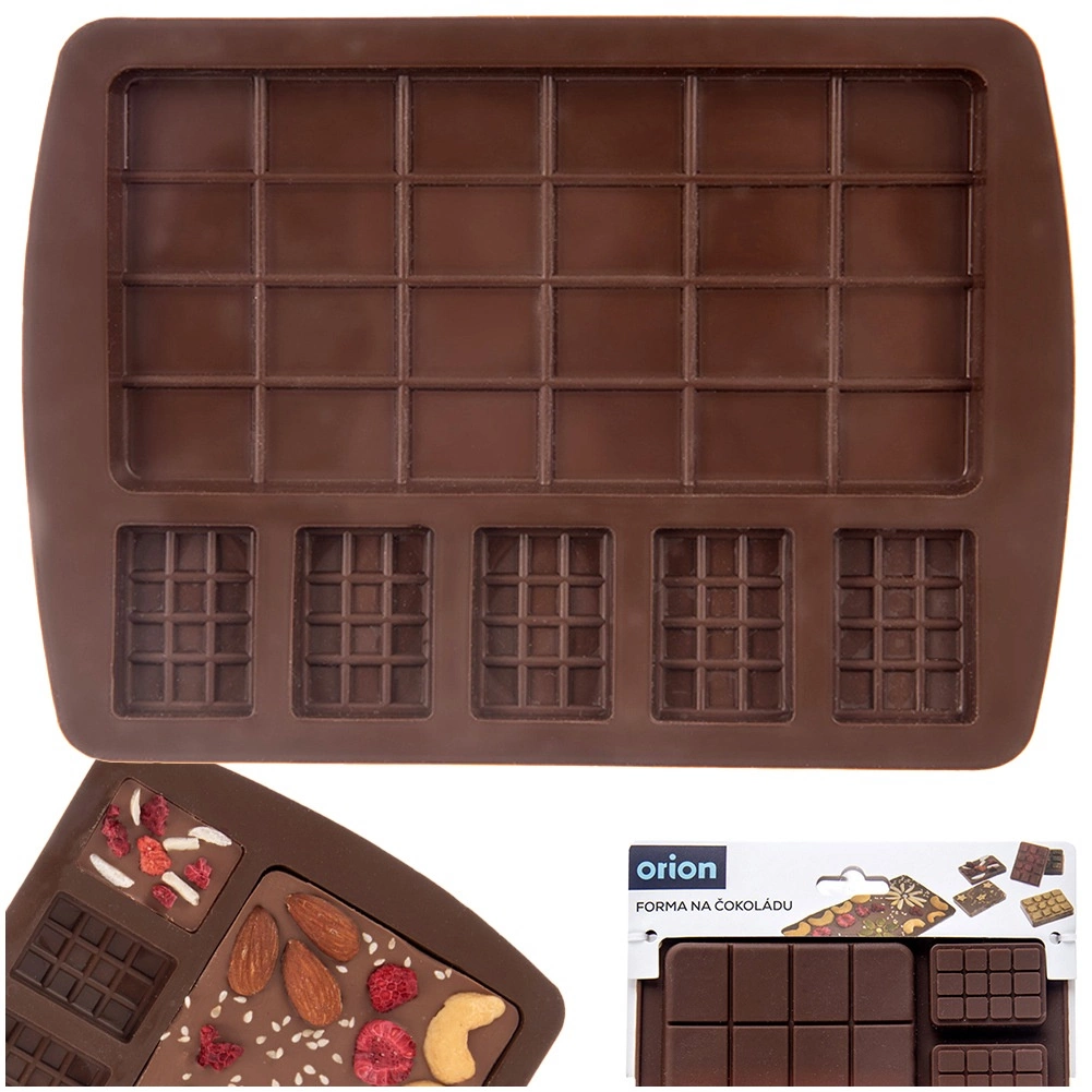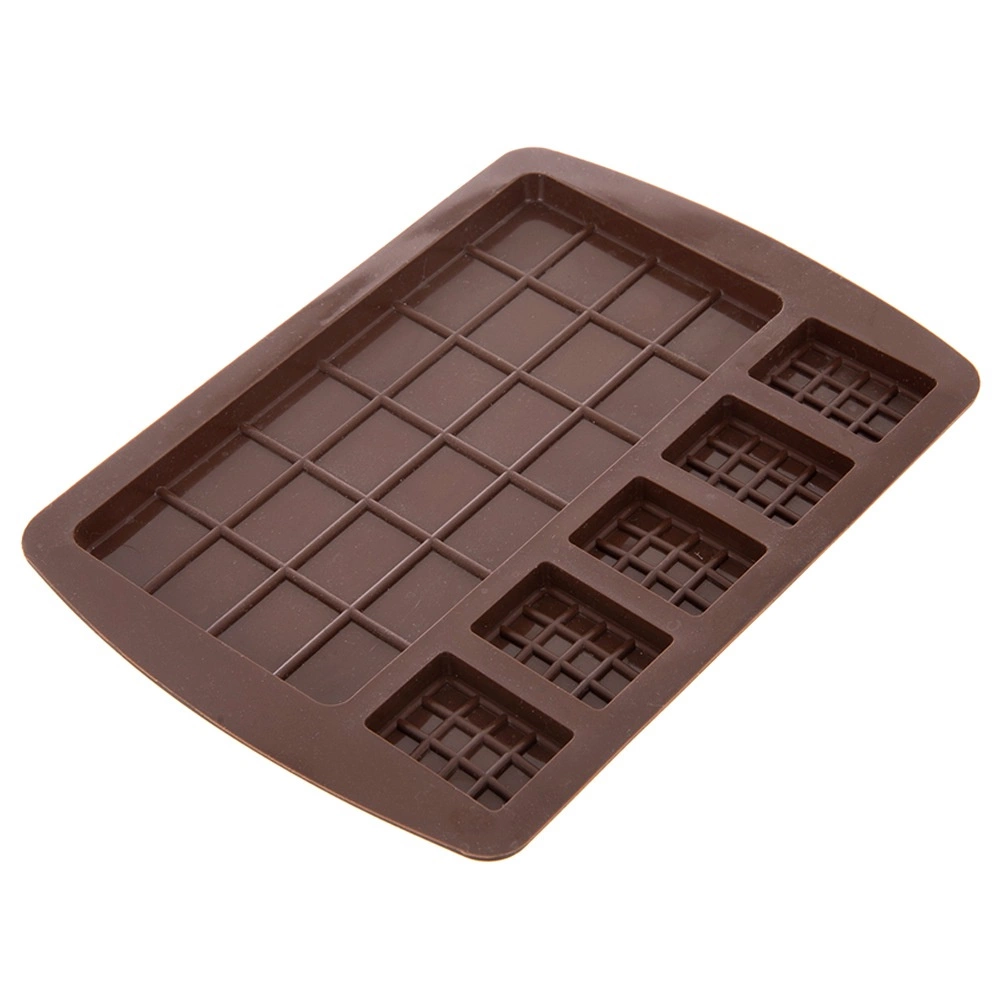 Met deze veelzijdige mal van hoogwaardige siliconen maak je indrukwekkende repen en mini pralines met noten, gedroogd fruit of koekjes. Het flexibele materiaal is stevig, duurzaam en plakt niet, zodat je de afgewerkte stukjes zonder beschadigen kunt lossen. De mal heeft totale afmetingen van 18,5 × 13,5 × 1,5 cm.