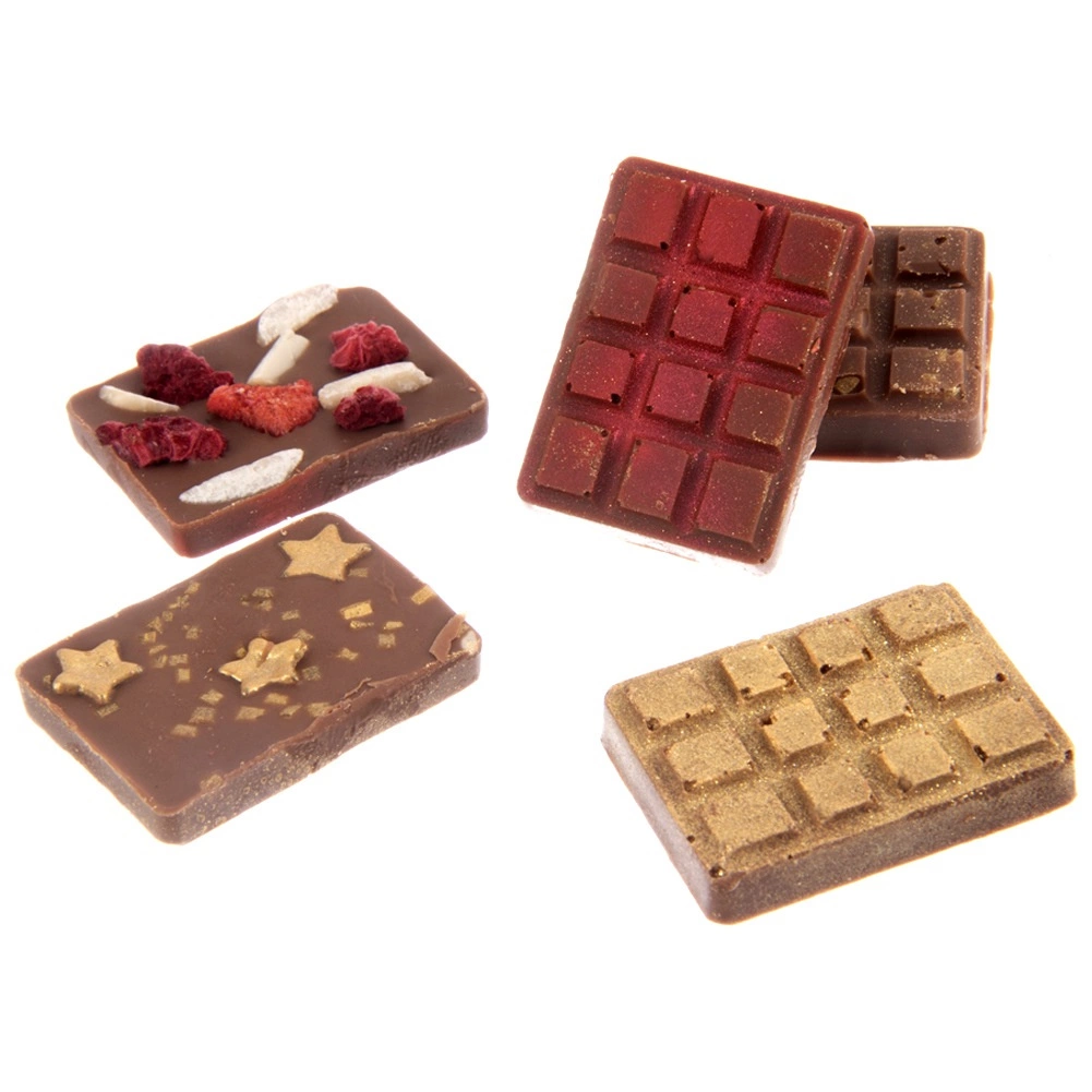 De mal heeft een slimme indeling: giet één grote reep en vijf mini repen voor proeverijen, cadeaus of tussendoortjes.