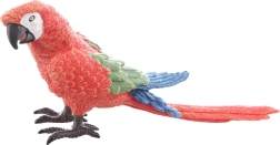 Natuurgetrouwe weergave van het verenkleed, helderrode kleur met blauw‑groene accenten en de karakteristieke snavelvorm voor een authentieke ara-look.