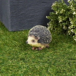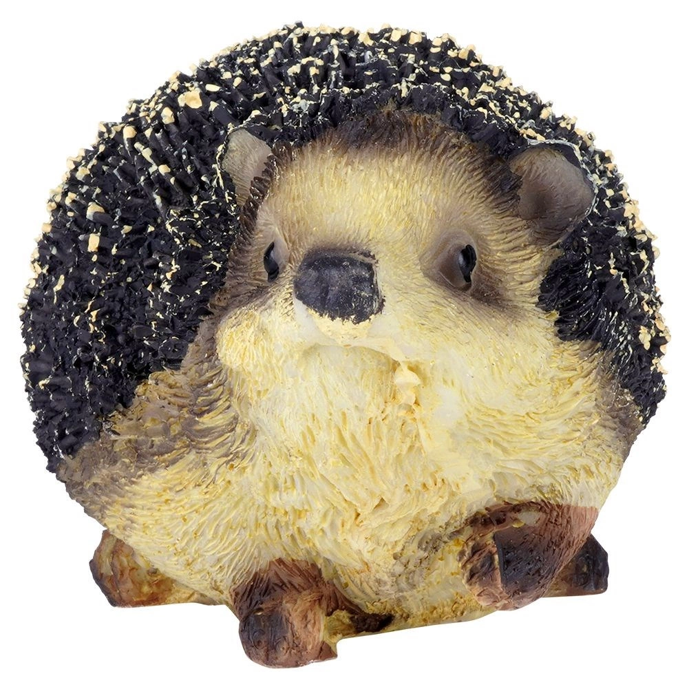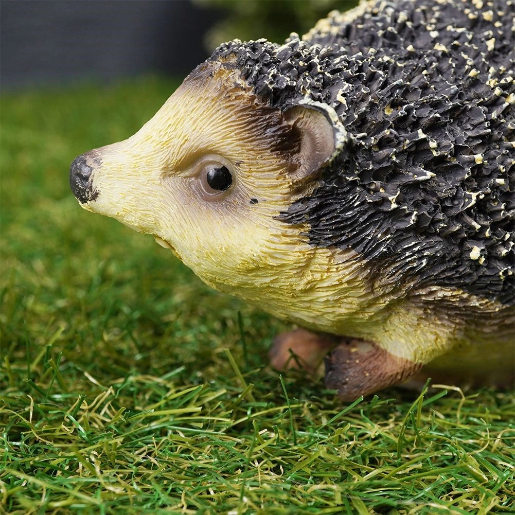 Fijn gevormde stekels, een expressief snuitje en natuurlijke kleuring geven het beeldje een levensechte uitstraling die op bloembedden en terrassen mooi tot zijn recht komt.