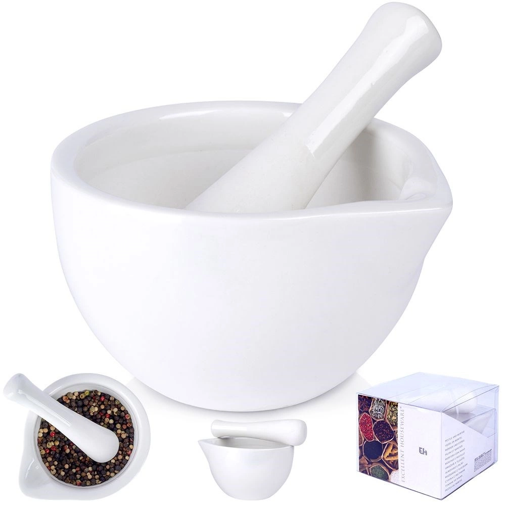 Zwaar, stabiel ontwerp van hoogwaardig wit keramiek voor effectief pletten zonder te schuiven.