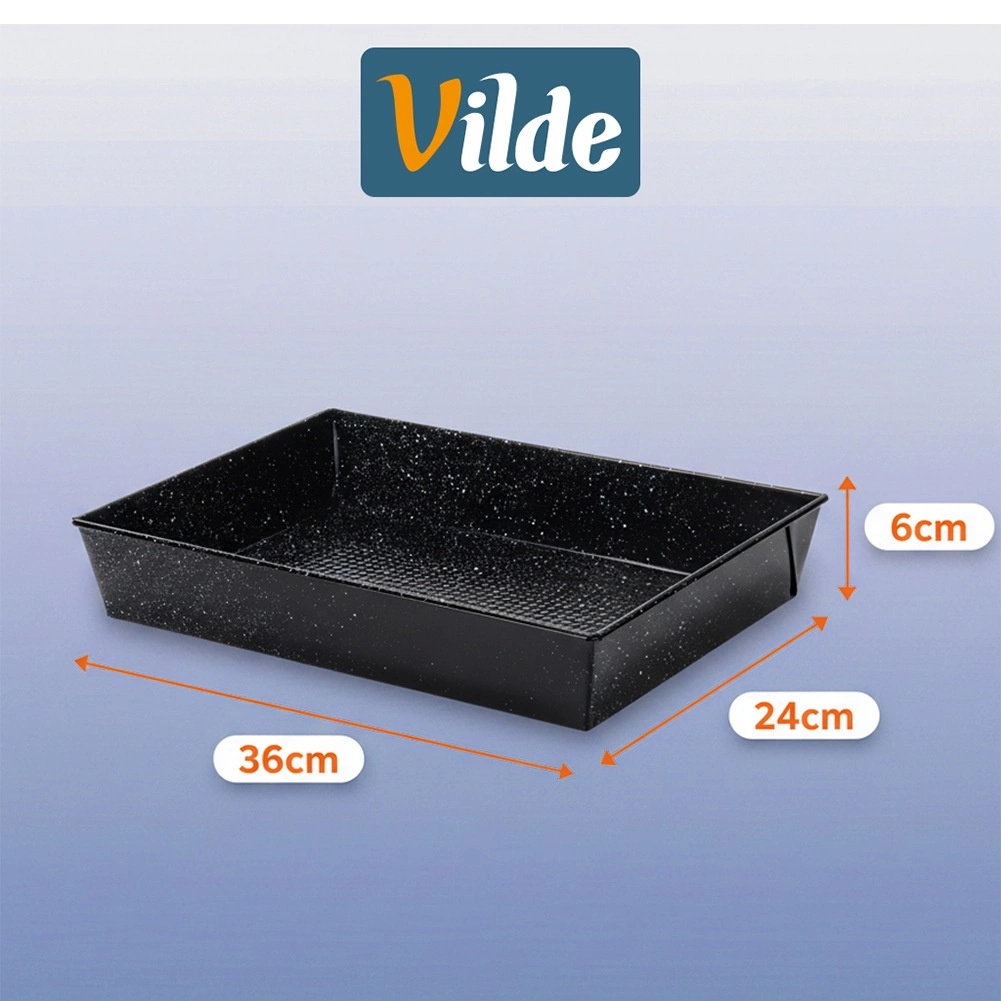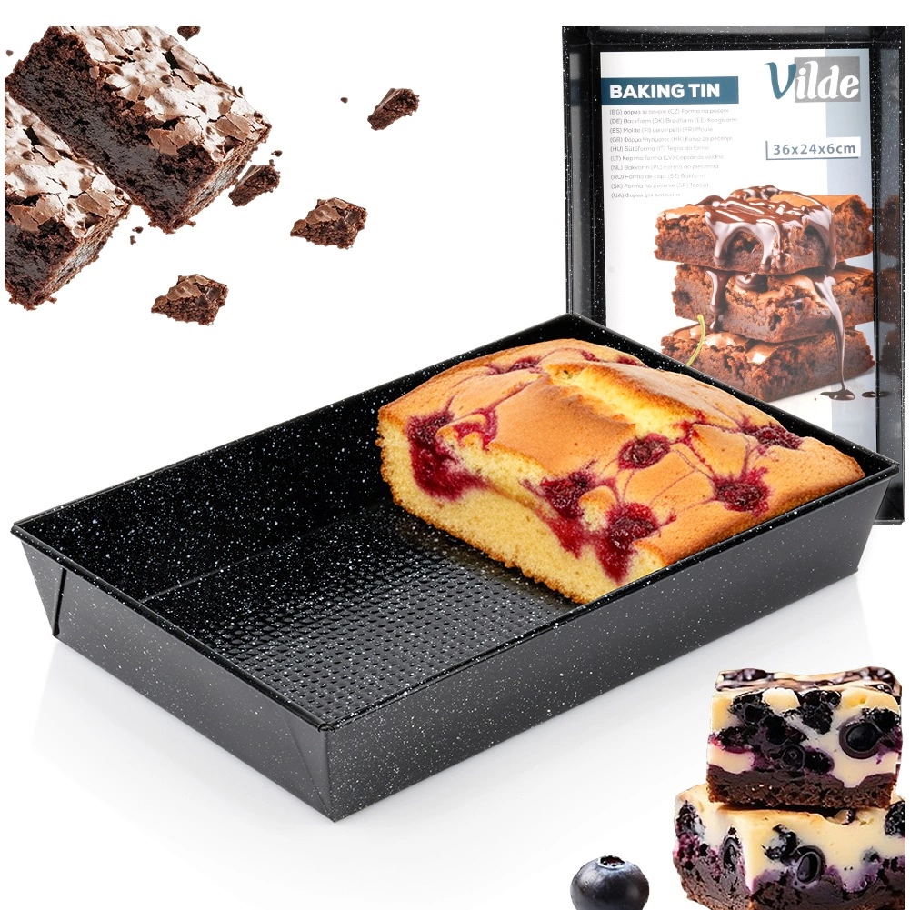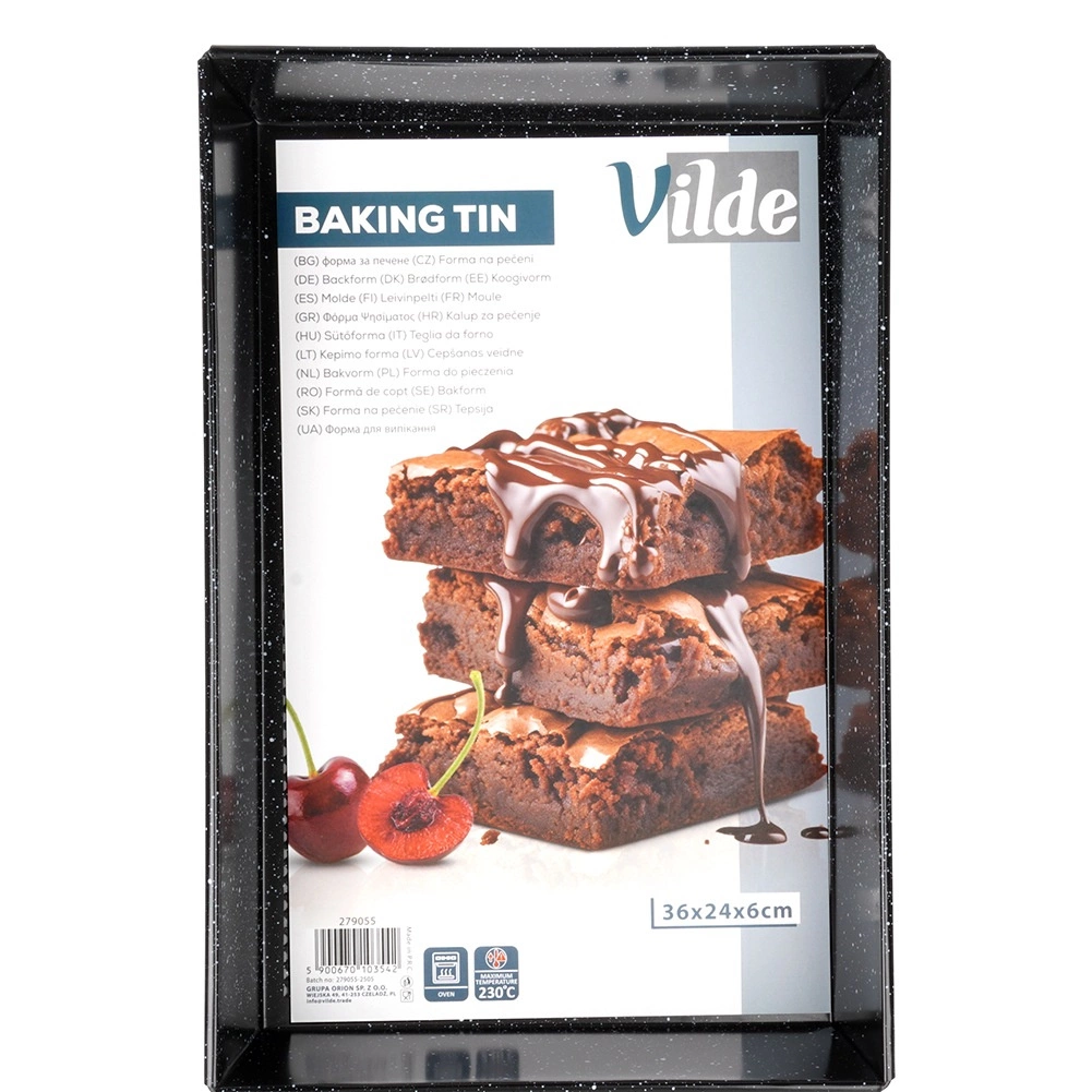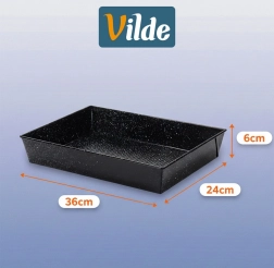 Het formaat 36 × 24 × 6 cm is perfect voor familiedesserts, hartige ovengerechten en het bakken van vlees en groenten. De vorm is voedselveilig en geschikt voor gas- en elektrische ovens tot 230 °C. Origineel product van het merk VILDE, vervaardigd volgens Europese normen.