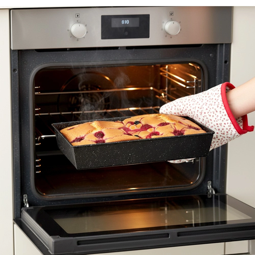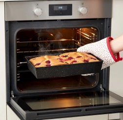 Het duurzame granieten oppervlak voorkomt aanbakken en maakt het eenvoudig om cakes en ovengerechten uit de vorm te lossen, en vergemakkelijkt tevens het reinigen.