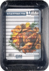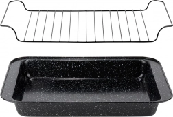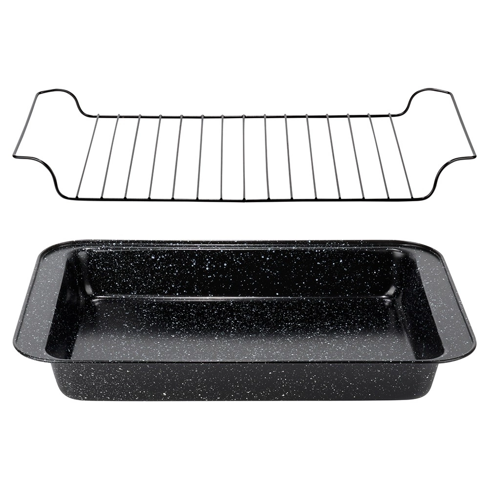 Praktische rechthoekige braadpan met uitneembaar rooster voor egale garing van vlees, groenten en desserts. Staal met granieten antiaanbaklaag zorgt voor gemakkelijk loslaten van gerechten en snel schoonmaken. Hittebestendig tot 230 °C, geschikt voor gas- en elektrische ovens en de vaatwasser.