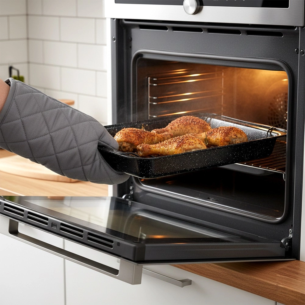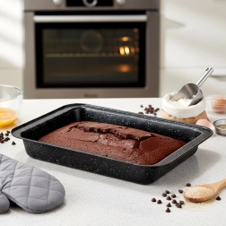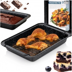 Dankzij de gelijkmatige warmteverdeling blijft gebraden vlees sappig met een knapperige korst. De vorm is veelzijdig: geschikt voor het bakken van vlees, groenten, ovenschotels, taarten en zelfs zelfgemaakte pizza met hogere rand. Na het bakken is reinigen eenvoudig – hij is geschikt voor de vaatwasser.