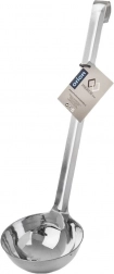 Praktische keukenlepel met een inhoud van 160 ml en een lengte van 34 cm, ideaal voor het serveren van soepen, sauzen en goulash. Gemaakt van hoogwaardig roestvrij staal, duurzaam, licht en gemakkelijk te reinigen. Dankzij de lange handgreep ligt hij prettig in de hand en zorgt hij voor veilig en nauwkeurig schenken. Mogelijkheid tot ophangen aan een keukengerei-reling.