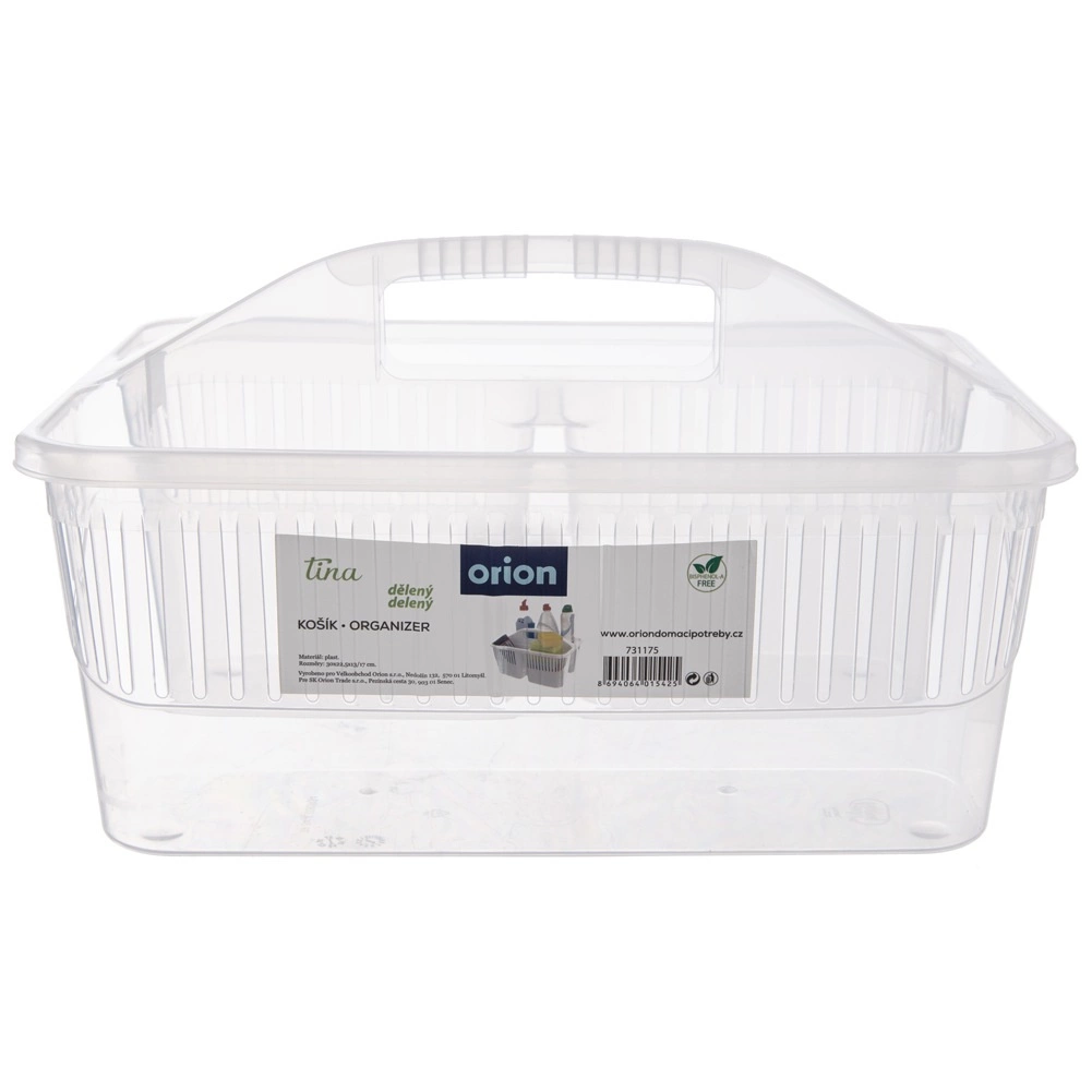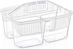 Houd orde tijdens het schoonmaken met de compacte organizer voor detergenten met drie gescheiden vakken. Dankzij het stevige centrale handvat verplaats je alle benodigde middelen, borstels en sponsjes gemakkelijk van kamer naar kamer. De mand is gemaakt van hoogwaardige kunststof in een witte of transparante variant (we verzenden willekeurig), is licht, duurzaam en eenvoudig schoon te houden.