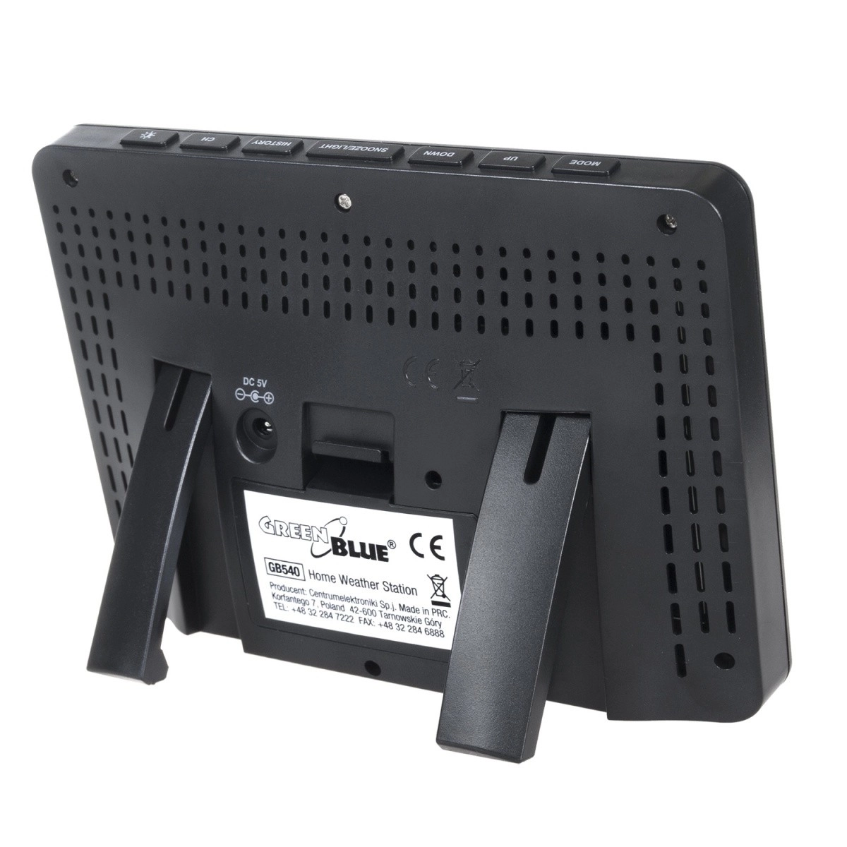 Het grote kleur LCD-scherm is overdag en ’s nachts uitstekend leesbaar en toont overzichtelijk ook weersvoorspellingsiconen, datum en dag en de maanfasen. In de verpakking zit een compacte draadloze sensor met een bereik tot 60 m in open terrein.