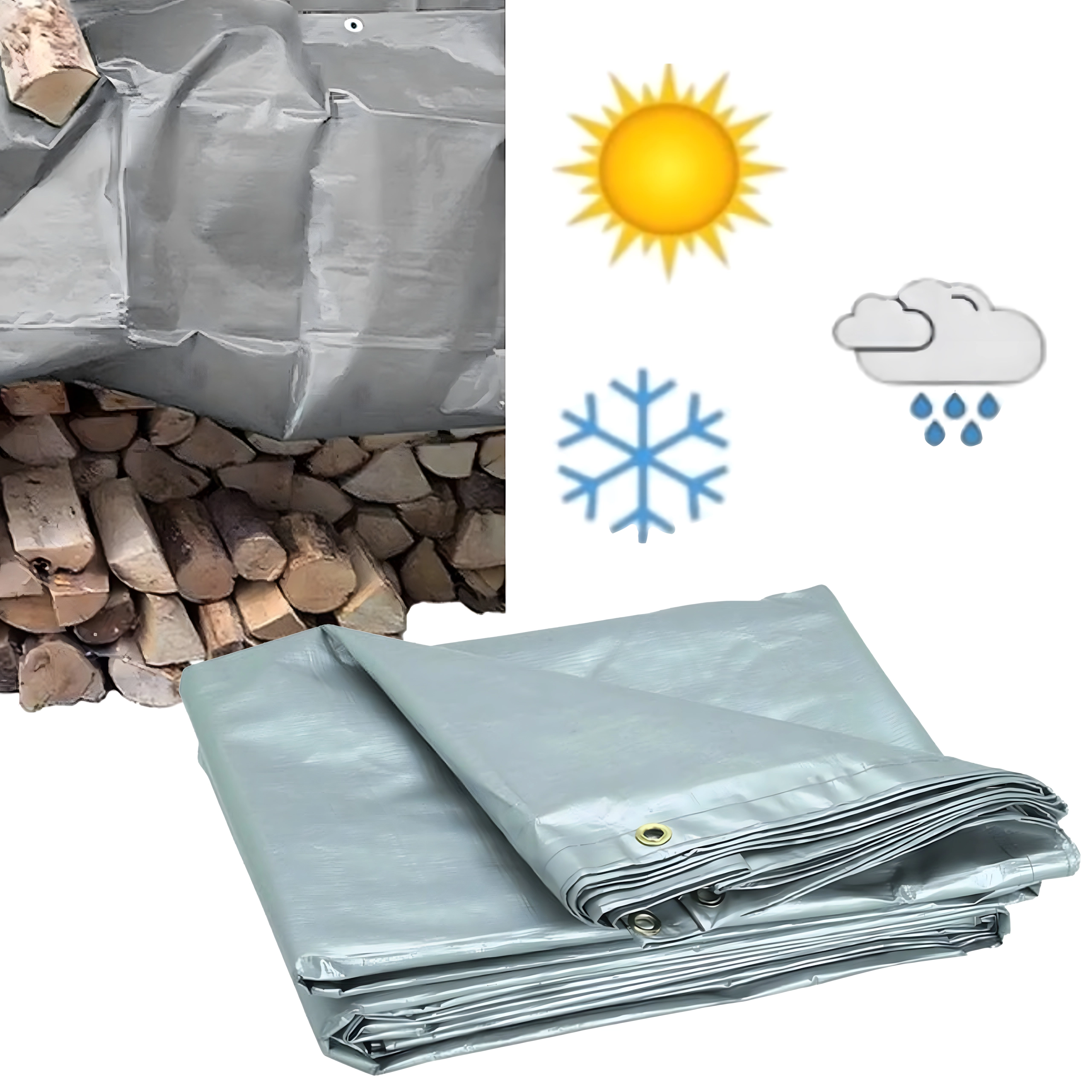 Beschermt brandhout, meubelen en voorraden tegen regen, sneeuw en zon. Versterkte randen en ringen maken stevige bevestiging mogelijk.