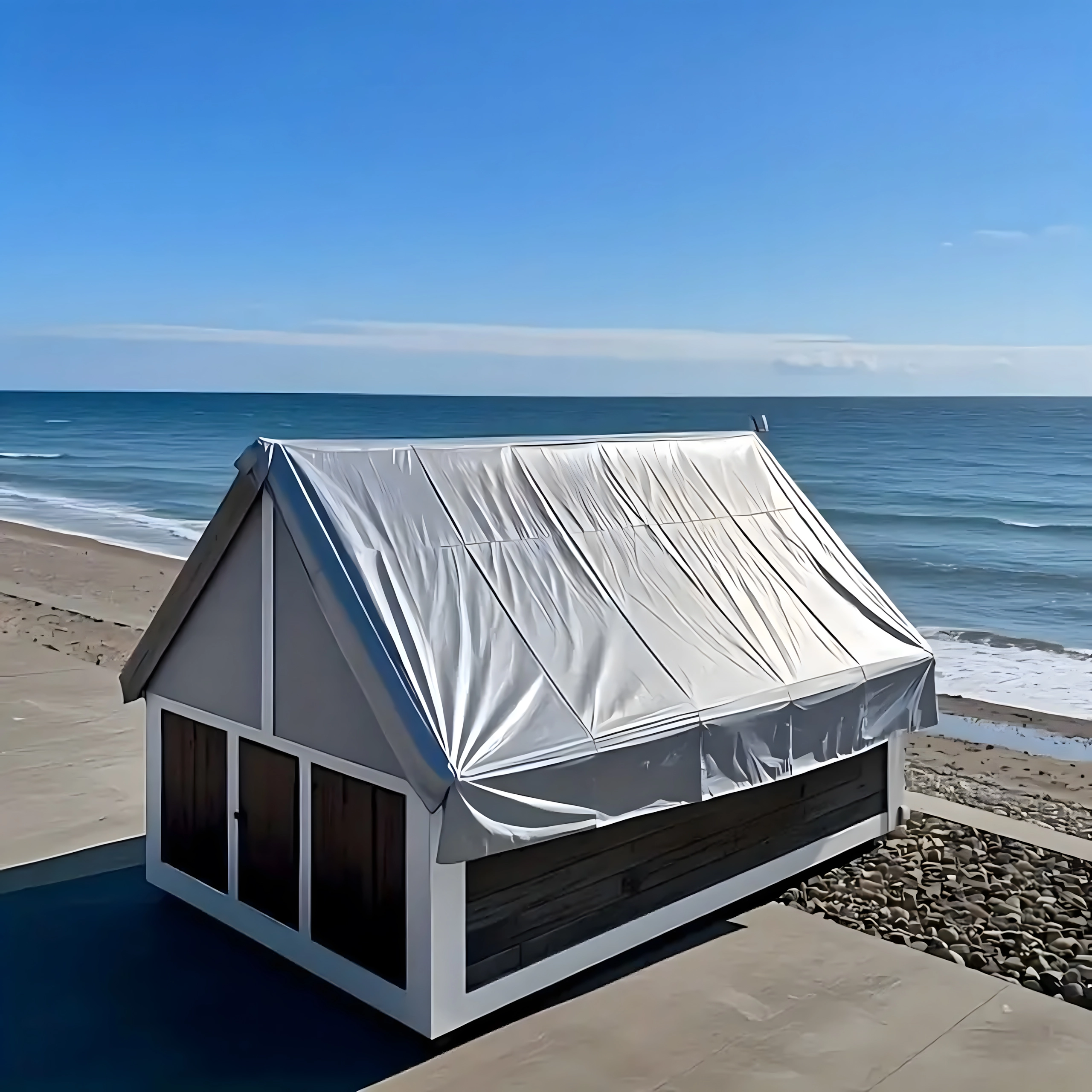 Snelle noodafdekking van dak of bouwplaats tegen regen en vuil. Het zeil hecht goed aan het oppervlak en houdt stand onder veeleisende omstandigheden.
