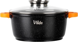 Ontdek de praktische VILDE-pan uit de TERRUNA AROMA-lijn, die een duurzaam gegoten aluminium lichaam combineert met een granieten antiaanbaklaag voor gezonder koken. Het glazen deksel met een brede roestvrijstalen greep en doseerder maakt het mogelijk wijn, water of bouillon toe te voegen zonder het deksel op te tillen, zodat het gerecht zijn temperatuur en aroma behoudt.