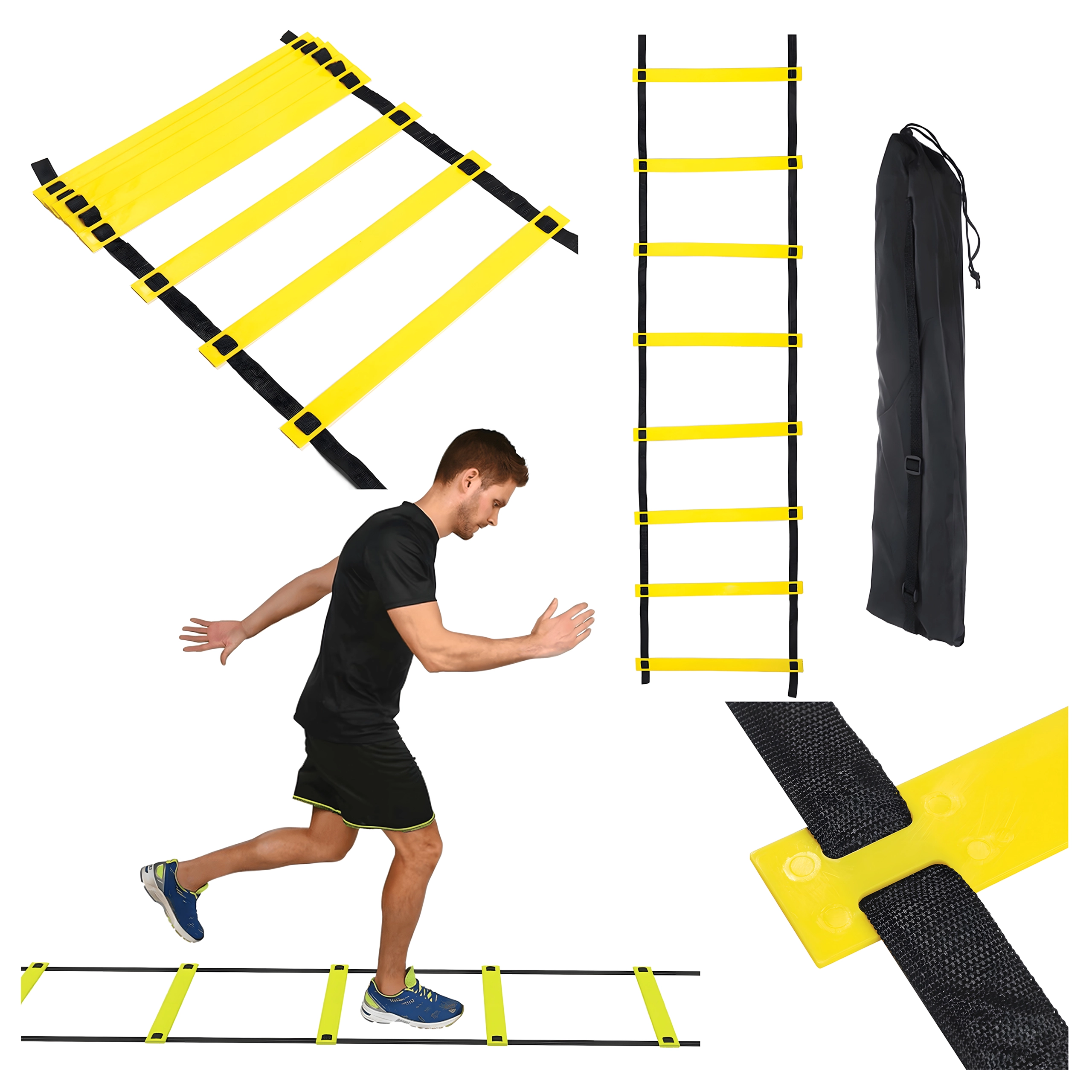 De professionele coördinatieladder van 6 m is een onmisbaar hulpmiddel voor effectieve speed & agility-training. Contrasterende gele sporten zijn goed zichtbaar, het platte profiel minimaliseert het risico op struikelen en verstelbare tussenafstanden laten je de drills precies op jouw doelen afstemmen. Het lichte ontwerp en de mogelijkheid om op te vouwen zorgen voor eenvoudig transport en gemakkelijke opslag.