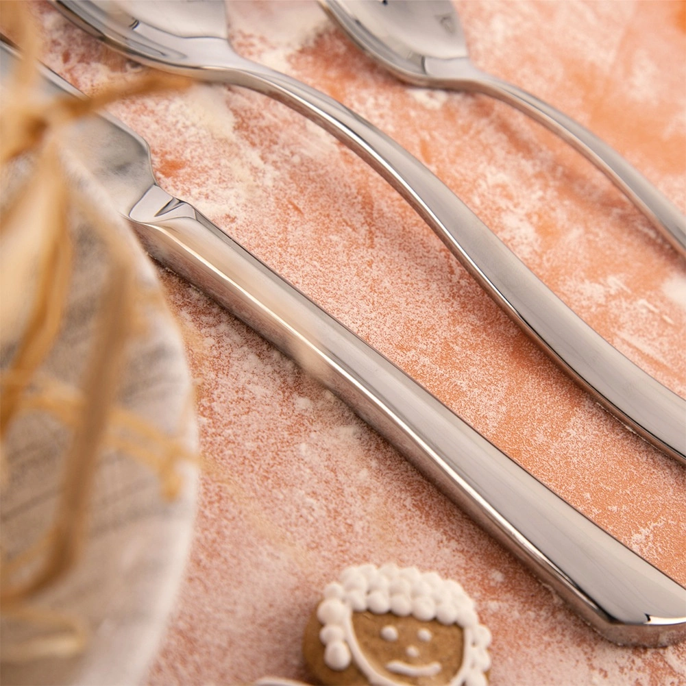 Het bestek is gemaakt van hoogwaardig roestvrij staal met een hoogglans gepolijst oppervlak dat corrosiebestendig en eenvoudig te onderhouden is.