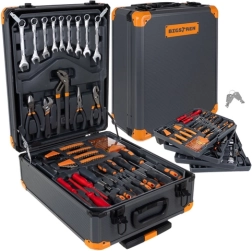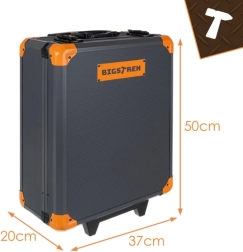 Zoekt u een universele en toch overzichtelijke uitrusting voor dagelijkse reparaties? Deze professionele BIGSTREN gereedschapsset combineert een rijke uitrusting (sleutels, doppen, bits, schroevendraaiers, tangen, accessoires) met mobiliteit dankzij de koffer op wieltjes. Alles is systematisch verdeeld over vier uitneembare inzetstukken voor snelle toegang.