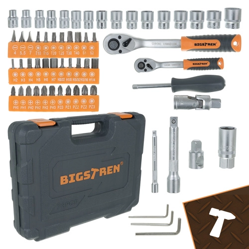 Met deze BIGSTREN-set heb je alles bij de hand voor montage, meubelreparaties, fiets- of autoservice en klussen rondom het huis. De ratels met 72 tanden maken precies werken mogelijk, zelfs in krappe ruimtes, en de doppen van CrV-staal garanderen duurzaamheid en betrouwbaarheid bij dagelijks gebruik.