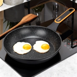 De duurzame granieten laag voorkomt aanbranden en maakt koken met minimaal oliegebruik mogelijk. Het eten laat gemakkelijk los en schoonmaken is zo gebeurd.