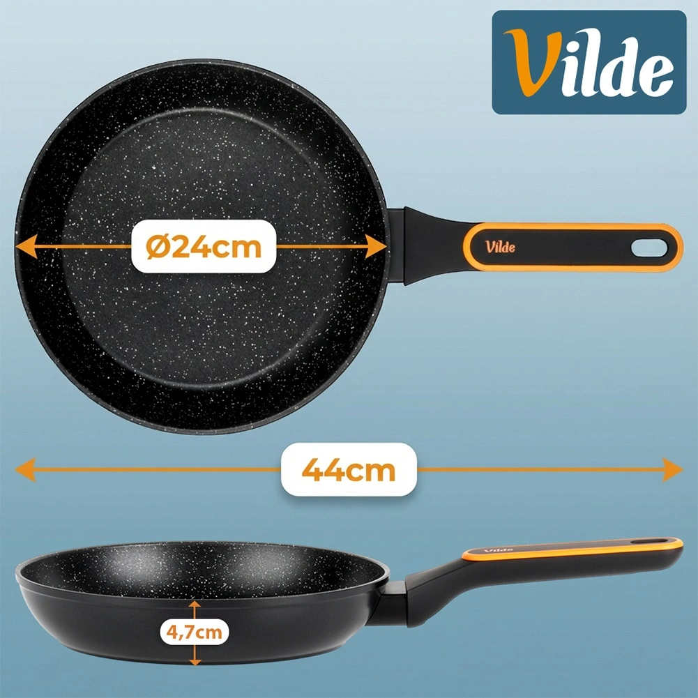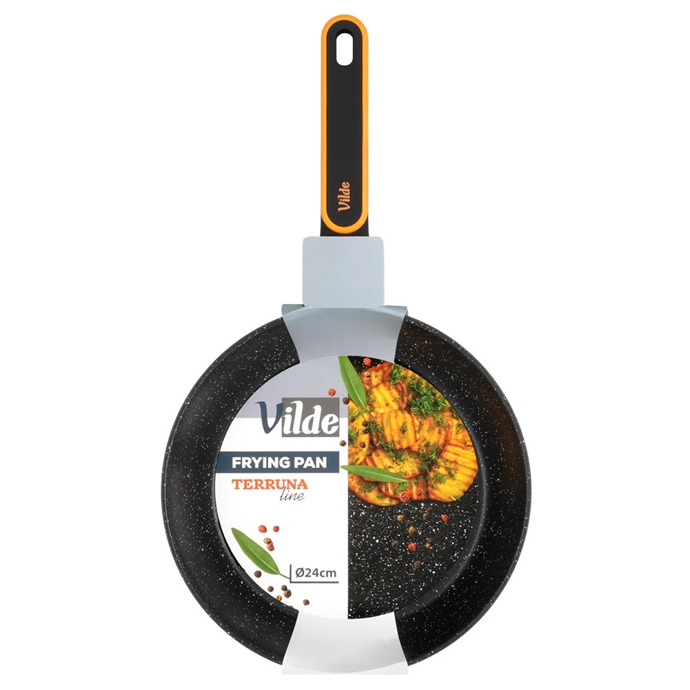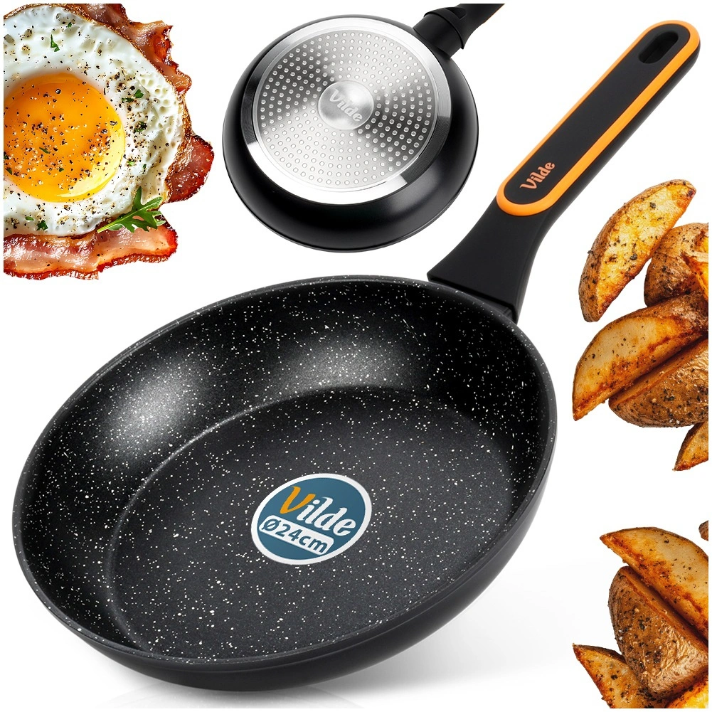 Universele granieten pan met een diameter van 24 cm voor dagelijks koken. Dankzij het anti-aanbakoppervlak, de snelle en gelijkmatige verhitting en de comfortabele koele greep bereidt u eenvoudig gezonde en smakelijke gerechten met een minimum aan vet. Geschikt voor alle soorten kookplaten, inclusief inductie en vaatwasserbestendig.
