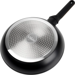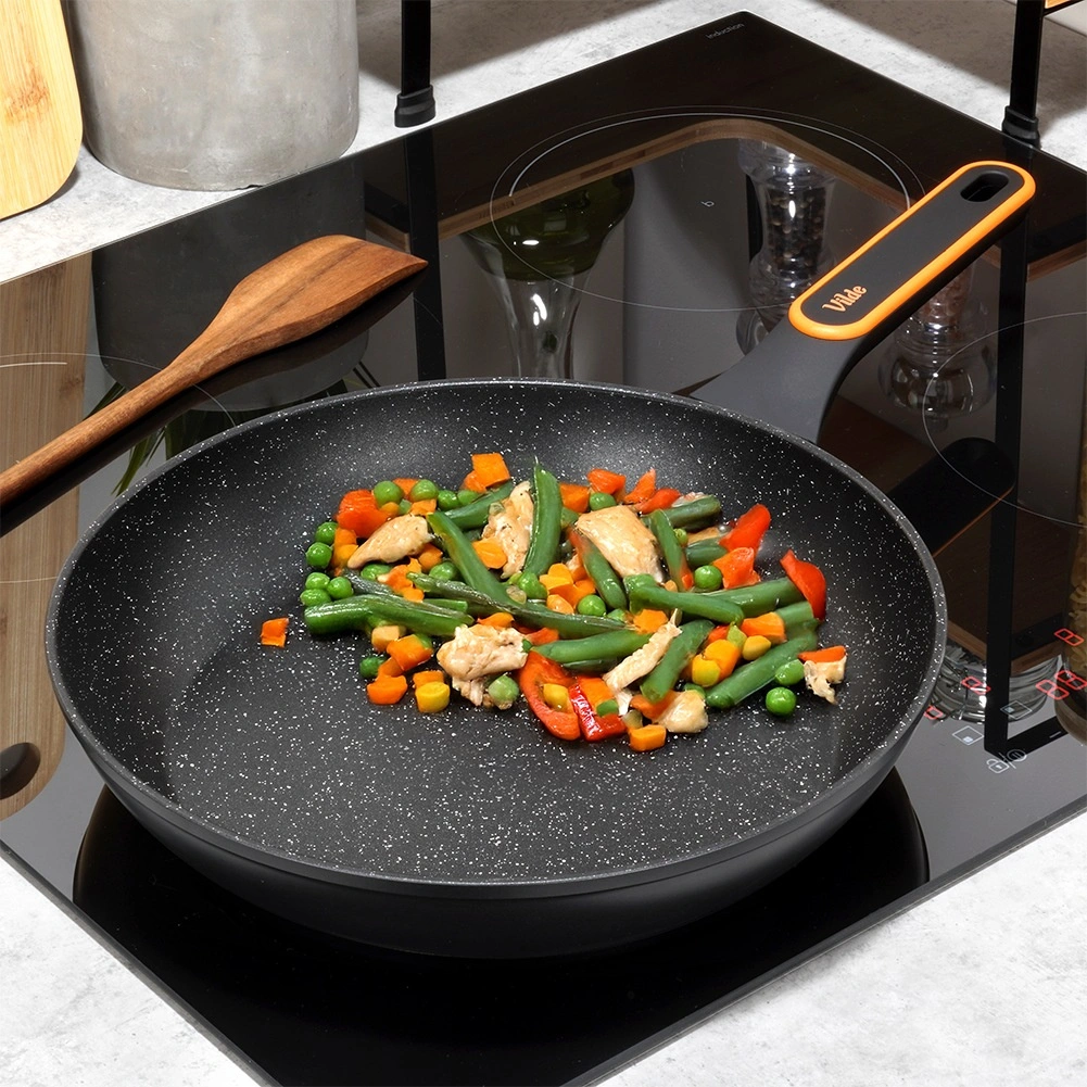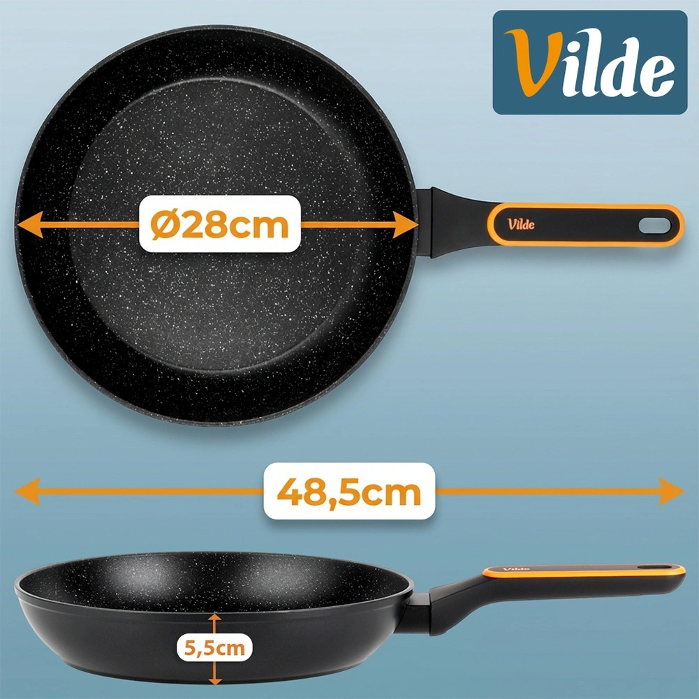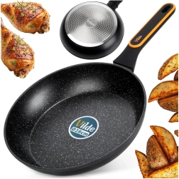 Kwalitatieve granieten pan met een diameter van 28 cm van gegoten aluminium voor dagelijks koken. Biedt een antiaanbaklaag voor gezond bakken met een minimum aan vet, snelle en gelijkmatige warmteverdeling en een ergonomische, anti-slip handgreep. Geschikt voor alle soorten kookplaten inclusief inductie en vaatwasser.