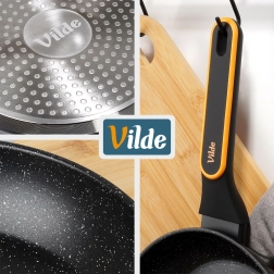 Het stone-effect oppervlak voorkomt aanbranden en maakt koken met weinig vet mogelijk, terwijl schoonmaken in een handomdraai gedaan is.