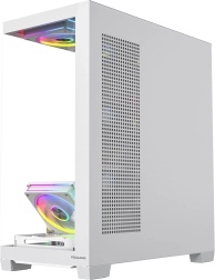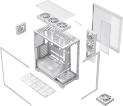 De behuizing is klaar voor de toekomst: ondersteuning voor ATX, mATX, ITX en moederborden met omgekeerde connectors (BTF), waterkoeling tot 360 mm boven en aan de zijkant en 120 mm achter. Dankzij meer ruimte achter de tray, rubberen doorvoeren en klittenbandstraps voor kabelmanagement blijft je build netjes en professioneel. Snap-on zijpanelen zonder gereedschap versnellen onderhoud en upgrades.