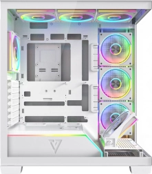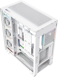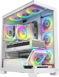 Af fabriek uitgerust met 8× 120 mm ARGB (waarvan 3 met omgekeerde bladen) en een frame dat lucht direct naar de GPU leidt. Stabiele temperaturen, zelfs bij langdurig gamen.