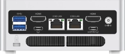 - 2× RJ45 2,5 Gigabit Ethernet; 1× USB 3.2 Gen 1 USB‑C (alleen data, voorzijde); 1× USB 3.2 USB‑C (alleen DisplayPort); 1× USB 3.2 USB‑C (Alt DP + data + PD Out); 4× USB 3.2 Gen 2 USB‑A; 2× HDMI; 1× DMIC; 1× 3,5 mm Combo; Clear CMOS-knop