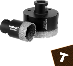 De BIGSTREN-set is ideaal voor installateurs, tegelzetters en veeleisende doe-het-zelvers. Vacuümgesoldeerde diamanten en een 15 mm hoge diamantwerklaag zorgen voor schone randen zonder scheuren, hoge snelheid en stabiele sneden. Bij kleinere diameters is koelwas geïntegreerd, bij grotere ventilatieopeningen om oververhitting te beperken en de levensduur te verlengen.