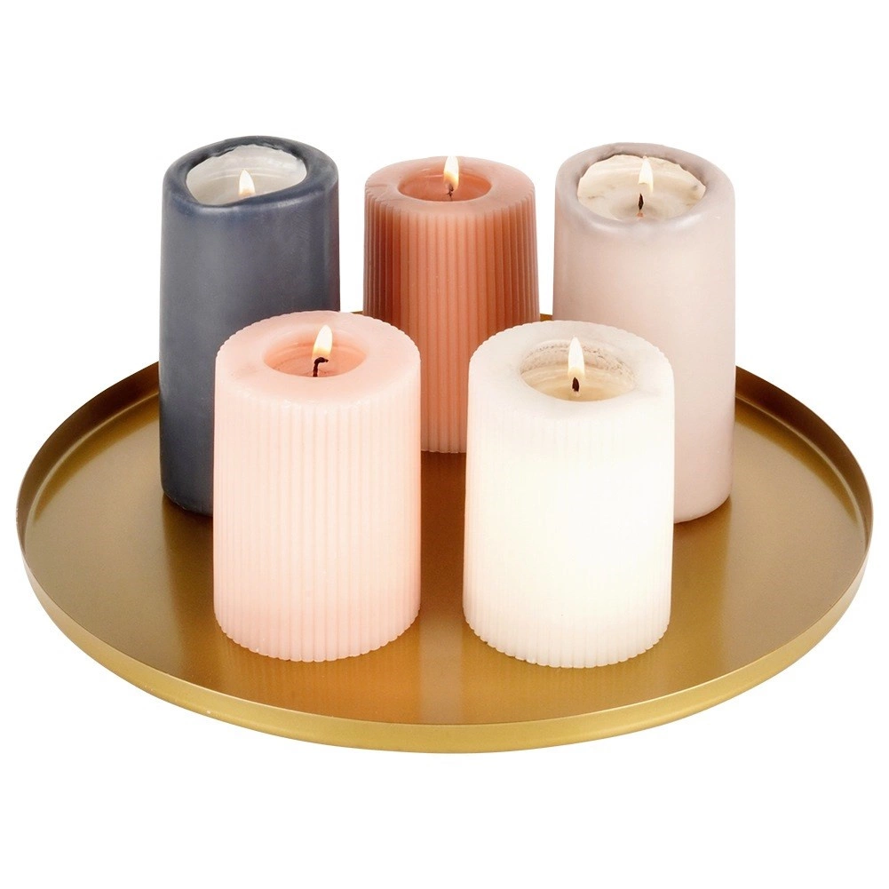 De lage, licht verhoogde rand houdt kaarsen en accessoires op hun plek en beschermt oppervlakken tegen druppelend kaarsvet.