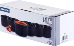 Elk schaaltje heeft een afmeting van circa 10 × 5 cm en een inhoud van 260 ml, wat de ideale grootte is voor individuele porties. De praktische set van 6 stuks bespaart ruimte dankzij de stapelbare vorm en maakt serveren voor familie en gasten eenvoudig. Origineel product van het merk VILDE, geproduceerd volgens Europese normen.