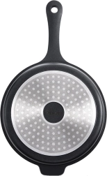 Diepe pan GRANDE met een diameter van 28 cm en een inhoud van 3 l van gegoten aluminium voor dagelijks koken. Heeft een antiaanbak granieten oppervlak Pfluon Granit zonder PFOA en PTFE, is geschikt voor alle soorten kookplaten, inclusief inductie, en kan in de oven en vaatwasser. De robuuste, naadloze constructie met een comfortabele handgreep zorgt voor een gelijkmatige warmteverdeling en snel, energiezuinig bakken en stoven.
