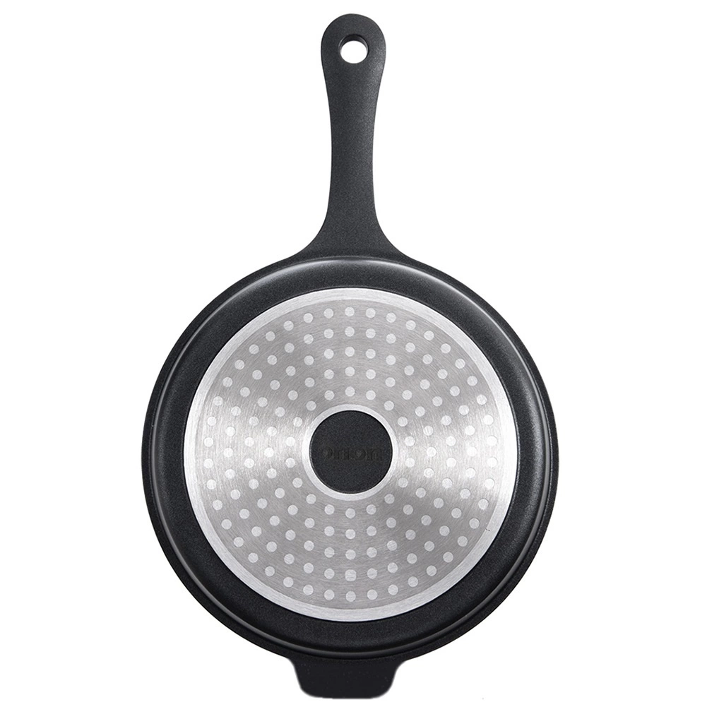 De stevige sandwichbodem zorgt voor efficiënte warmtetransfer op gas, elektrisch, keramisch en inductie.