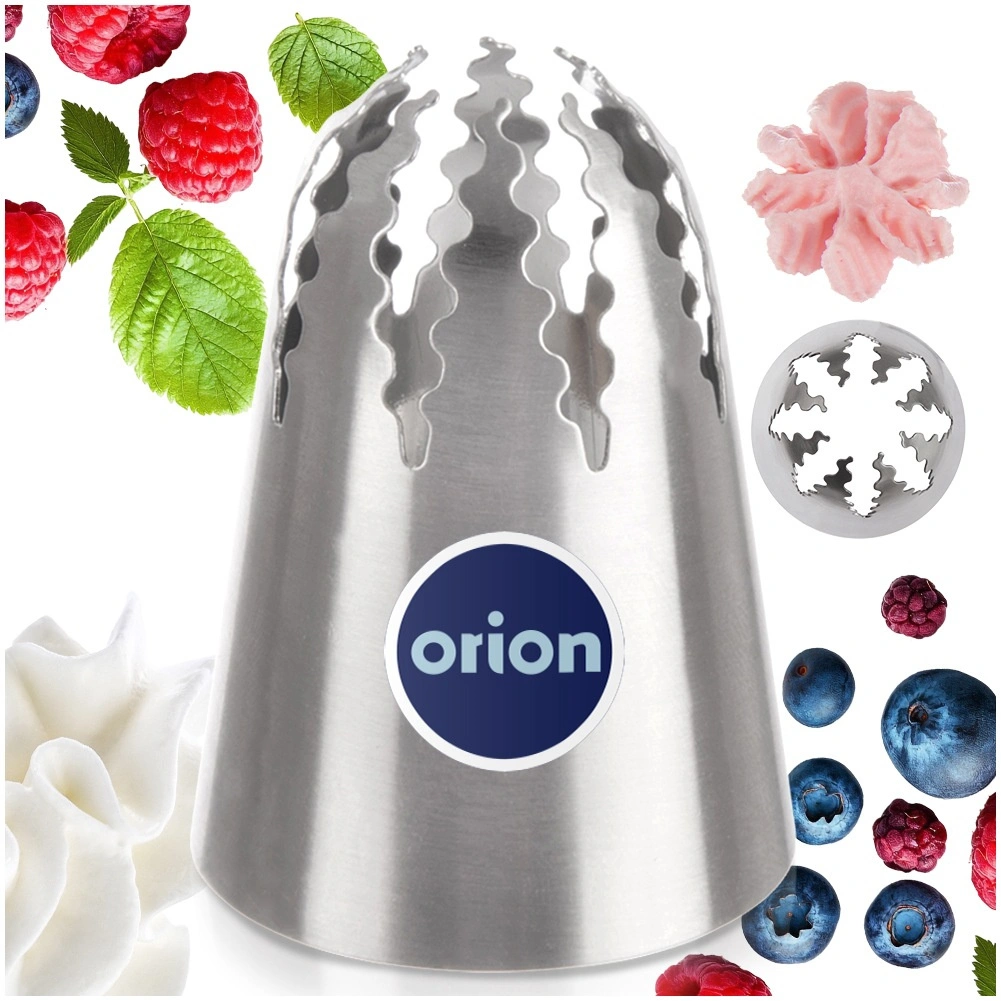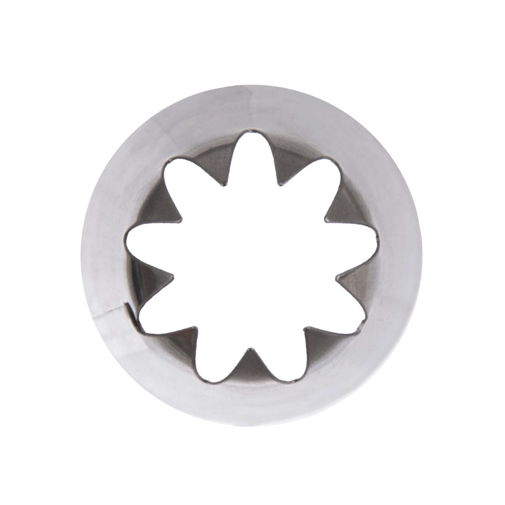 Dit stervormige spuitmondje van RVS is een betrouwbare hulp voor het maken van opvallende sterretjes, rozetten, randen en bloemmotieven. Dankzij de precieze snit bereik je strakke lijnen en een professionele uitstraling van je desserts.