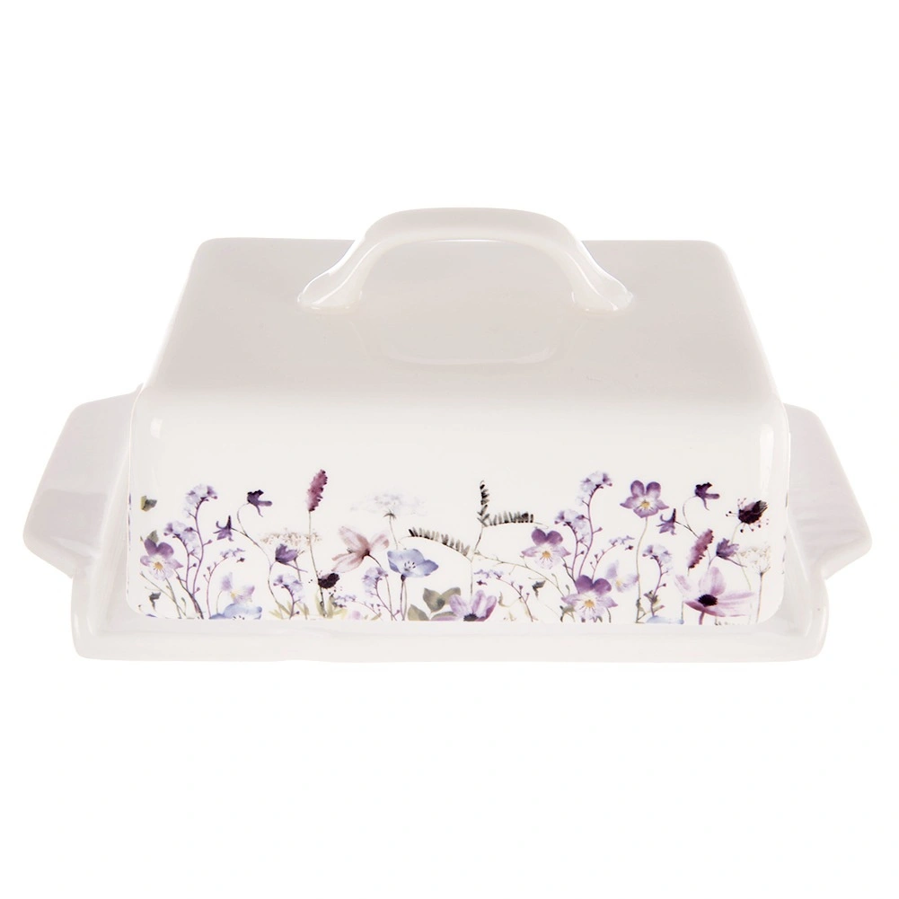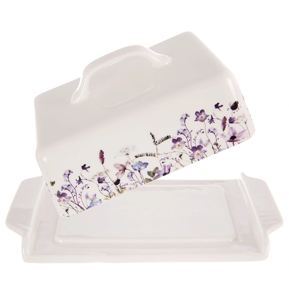 Deze porseleinen botervloot in het wit met een charmant weidebloemendecor is een stijlvolle en functionele toevoeging aan elke keuken. Houdt boter beschermd, vers en klaar om direct op tafel te serveren. Dankzij het deksel met comfortabele greep is hij makkelijk te hanteren en blijft de boter hygiënisch afgedekt.