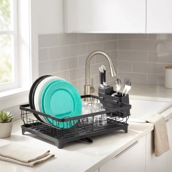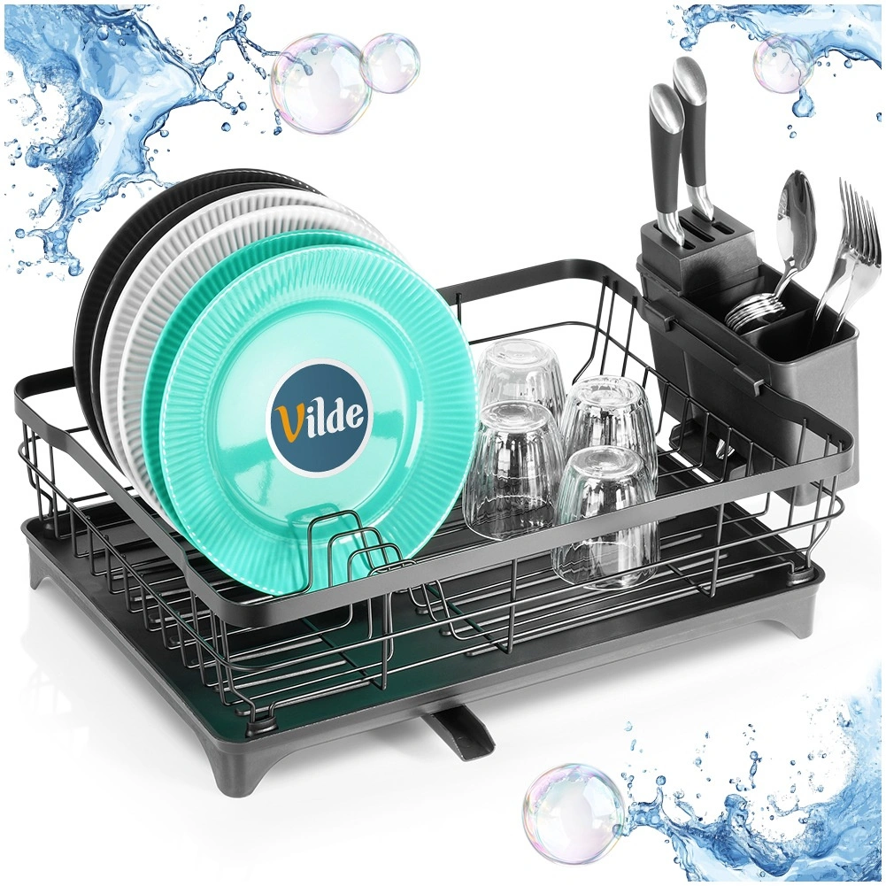 - Keukenafdruiprek voor vaat met bak en bestekhouder