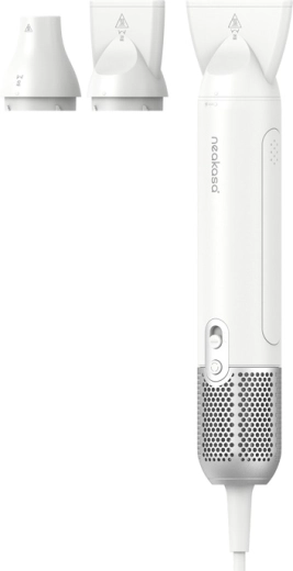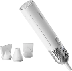 In de verpakking vind je 3 opzetstukken: een brede platte voor grote oppervlakken, een klassieke platte voor snel nadrogen en een ronde voor volume en moeilijk bereikbare plekken (pootjes, rondom de oren). De föhn weegt slechts 550 g, meet 28,8 cm en heeft zachte touch-bediening, een magnetisch filter voor eenvoudig reinigen en een kabel van 2 m voor comfortabel gebruik.